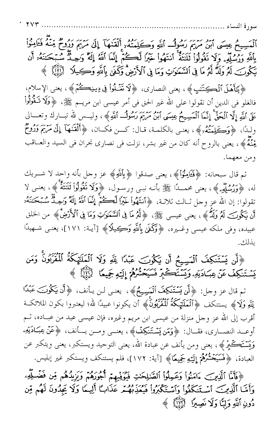 تفسير سورة النساء آية 172