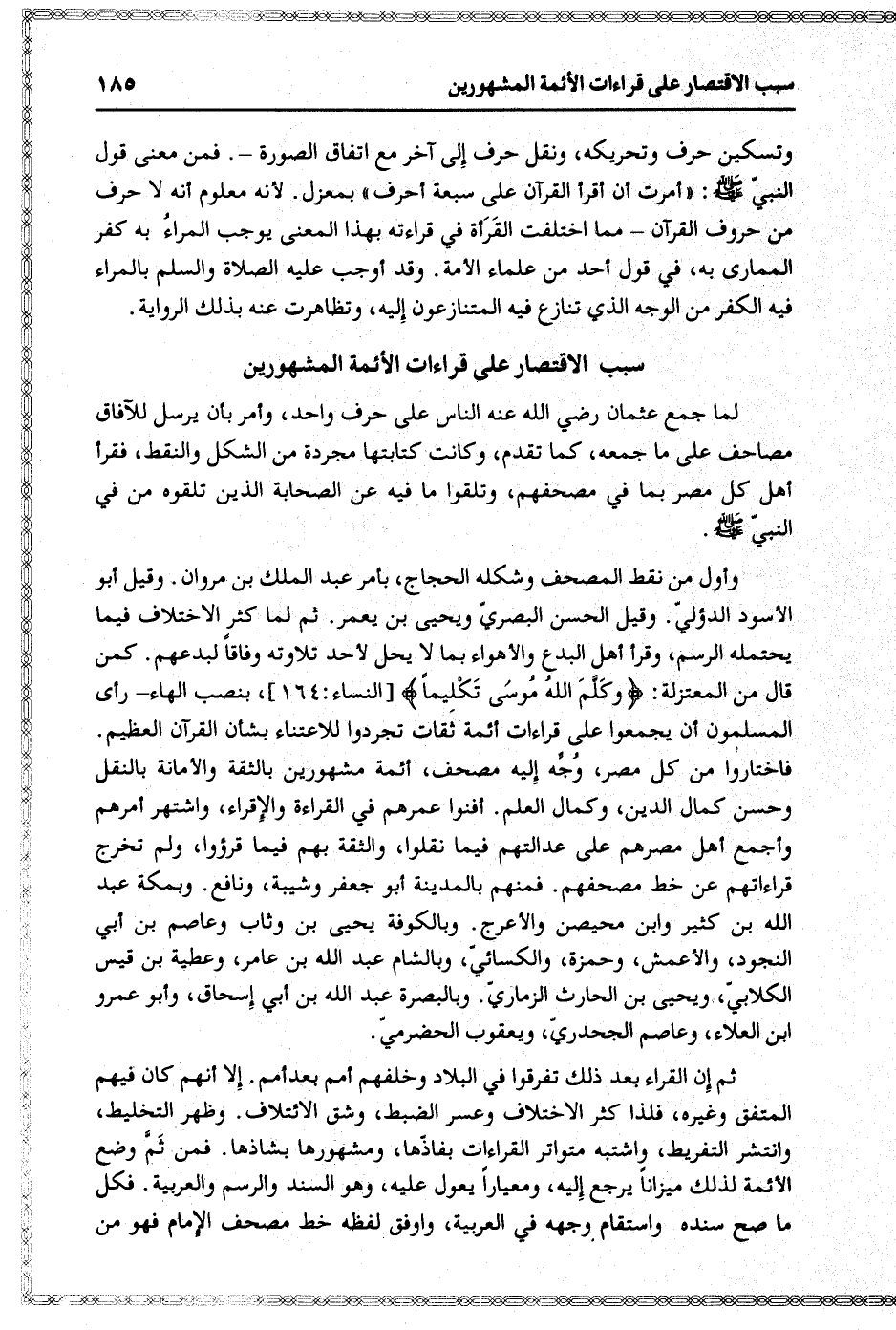 سبب الاقتصار على قراءات الأئمة المشهورين