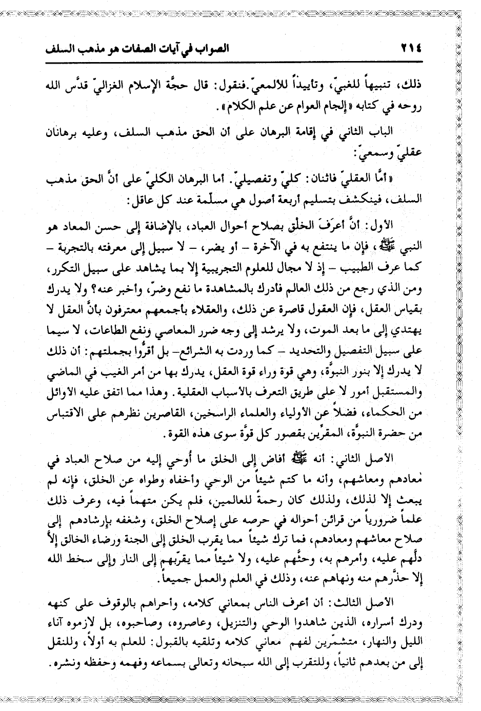 الباب الثاني في إقامة البرهان على أن الحق مذهب السلف، وعليه برهانان عقليّ وسمعيّ: