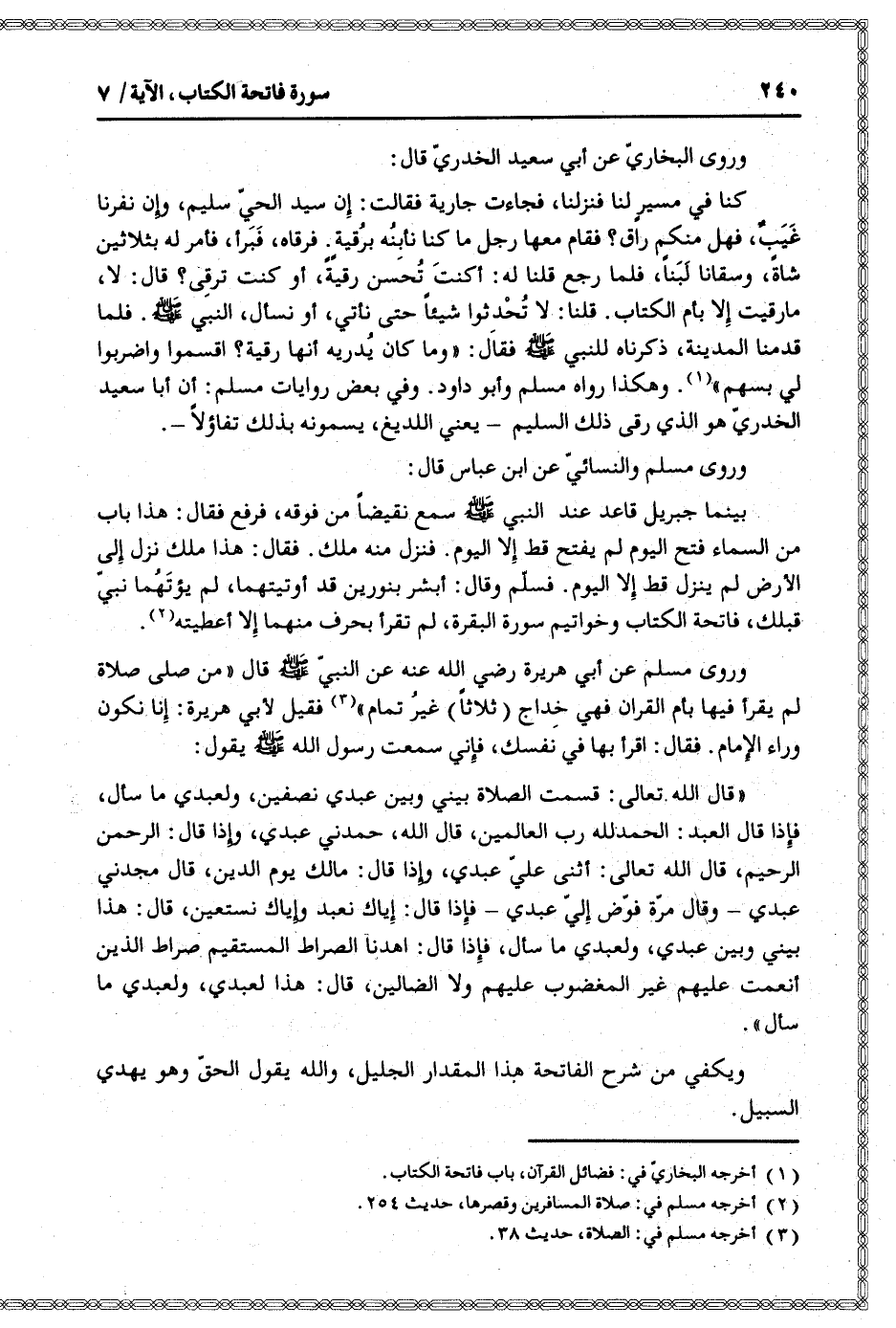 (1) أخرجه البخاريّ في: فضائل القرآن، باب فاتحة الكتاب. [.....]