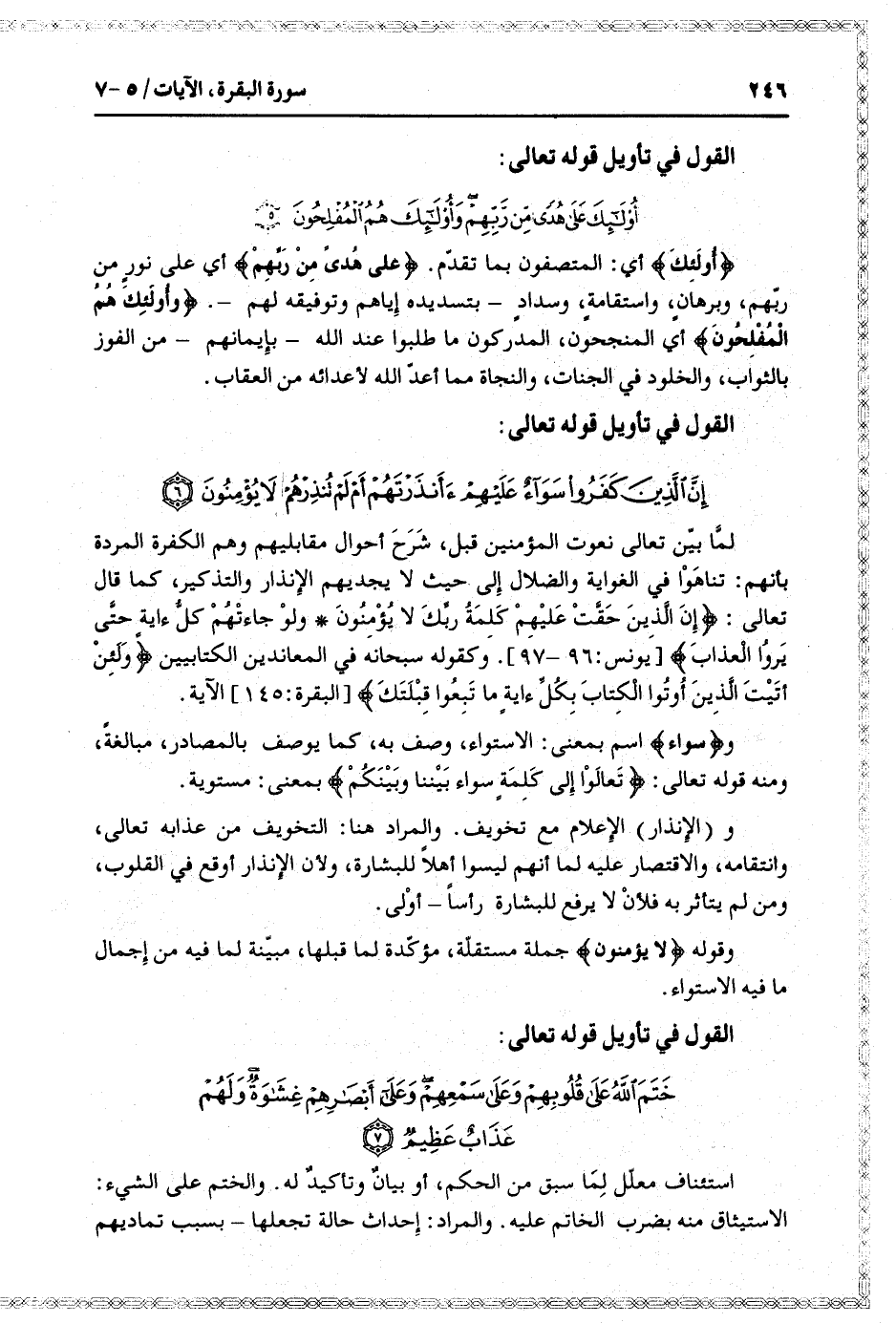 القول في تأويل قوله تعالى: [سورة البقرة (2) : آية 7]