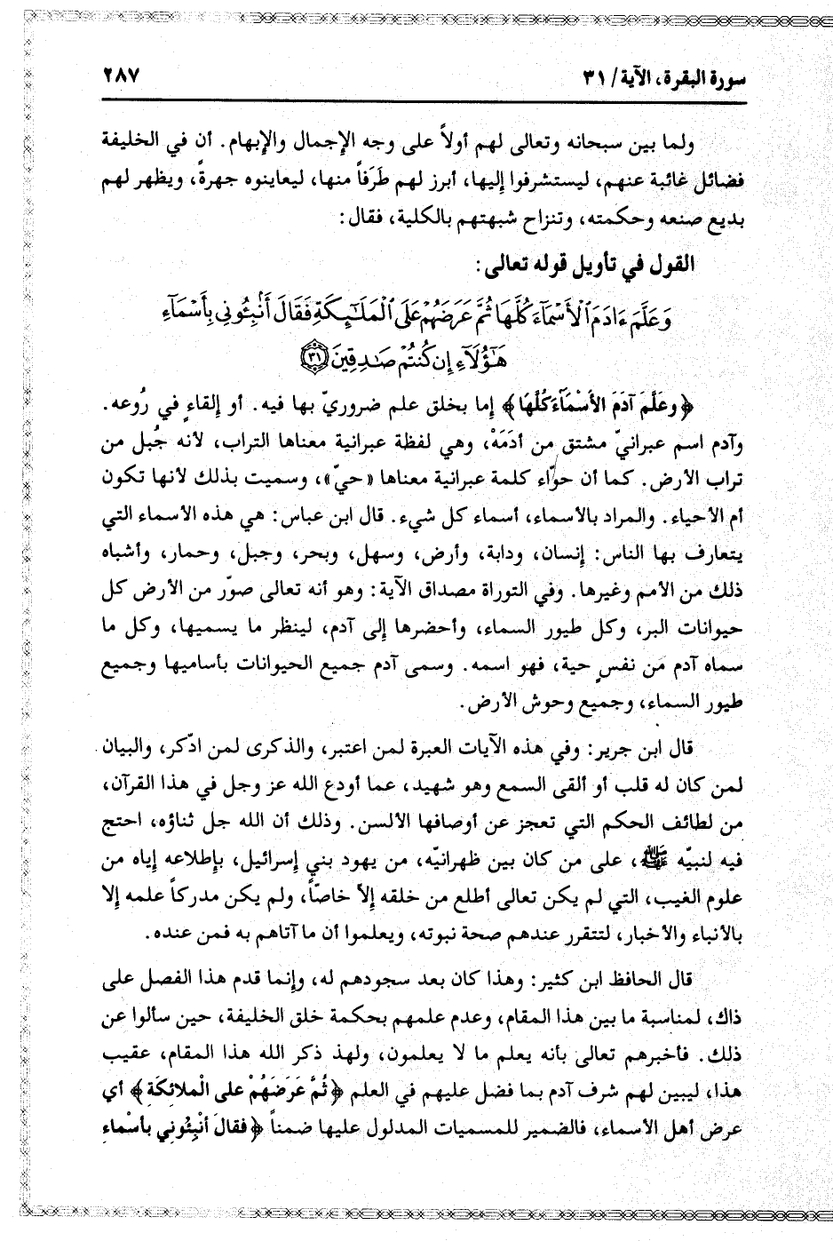 وَعَلَّمَ آدَمَ الْأَسْماءَ كُلَّها ثُمَّ عَرَضَهُمْ عَلَى الْمَلائِكَةِ فَقالَ أَنْبِئُونِي بِأَسْماءِ هؤُلاءِ إِنْ كُنْتُمْ صادِقِينَ (31)