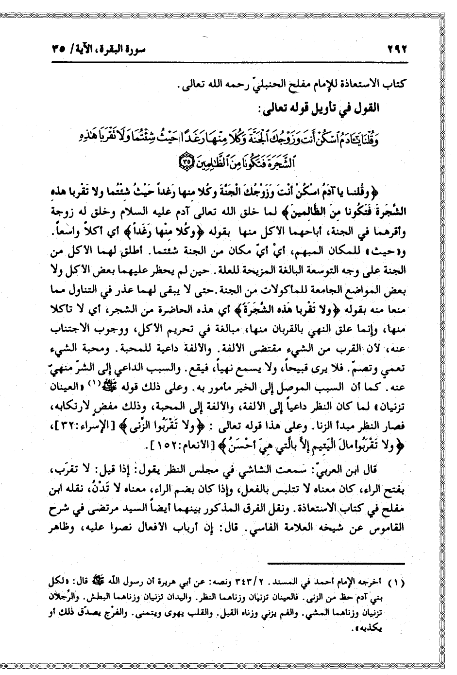وَقُلْنا يا آدَمُ اسْكُنْ أَنْتَ وَزَوْجُكَ الْجَنَّةَ وَكُلا مِنْها رَغَداً حَيْثُ شِئْتُما وَلا تَقْرَبا هذِهِ الشَّجَرَةَ فَتَكُونا مِنَ الظَّالِمِينَ (35)