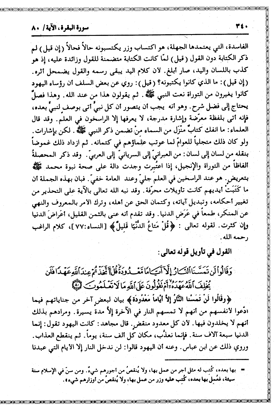 القول في تأويل قوله تعالى: [سورة البقرة (2) : آية 80]