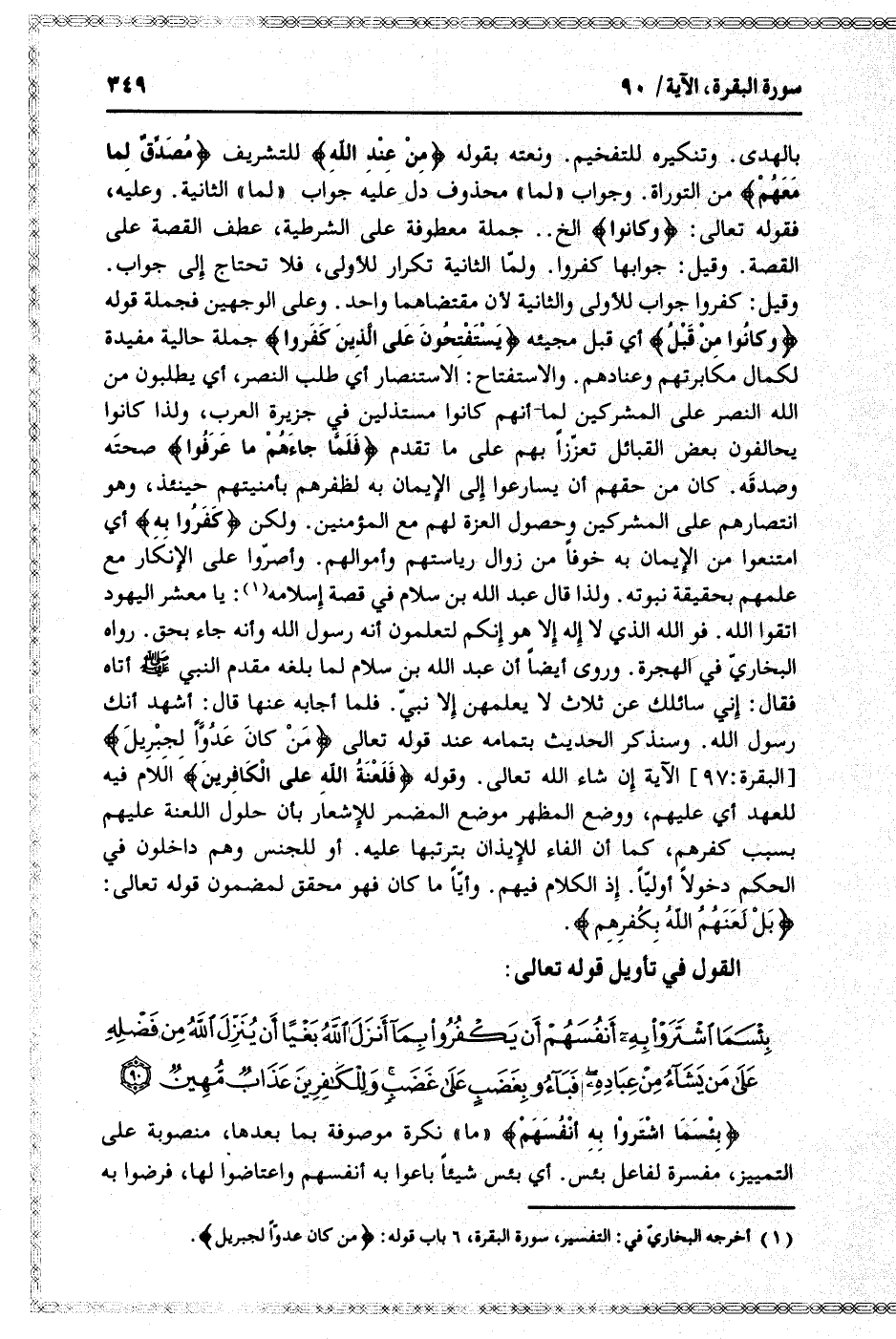 (1) أخرجه البخاريّ في: التفسير، سورة البقرة، 6 باب قوله: مَنْ كانَ عَدُوًّا لِجِبْرِيلَ.