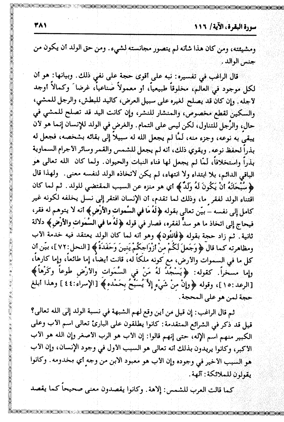 ثم قال الراغب: إن قيل من أين وقع لهم الشبهة في نسبة الولد إلى الله تعالى؟