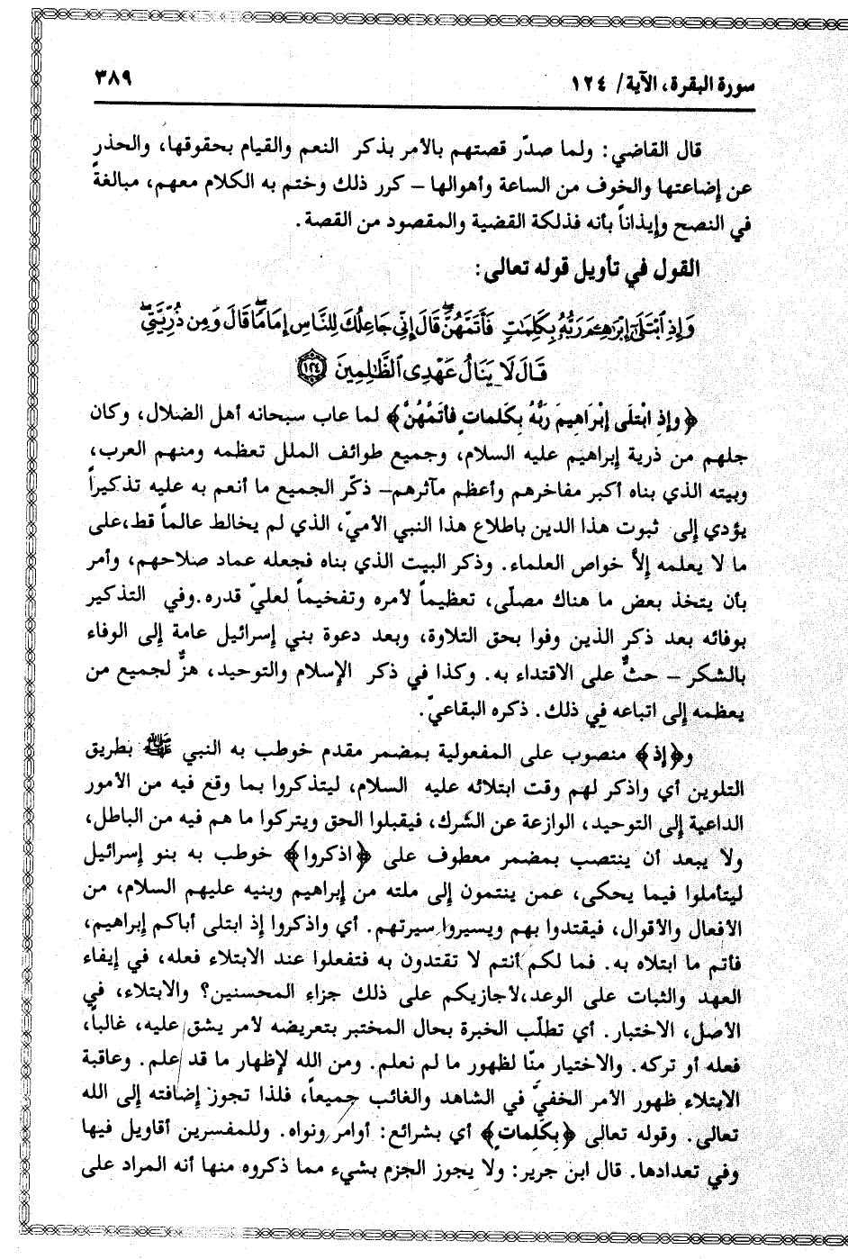 وَإِذِ ابْتَلى إِبْراهِيمَ رَبُّهُ بِكَلِماتٍ فَأَتَمَّهُنَّ قالَ إِنِّي جاعِلُكَ لِلنَّاسِ إِماماً قالَ وَمِنْ ذُرِّيَّتِي قالَ لا يَنالُ عَهْدِي الظَّالِمِينَ (124)