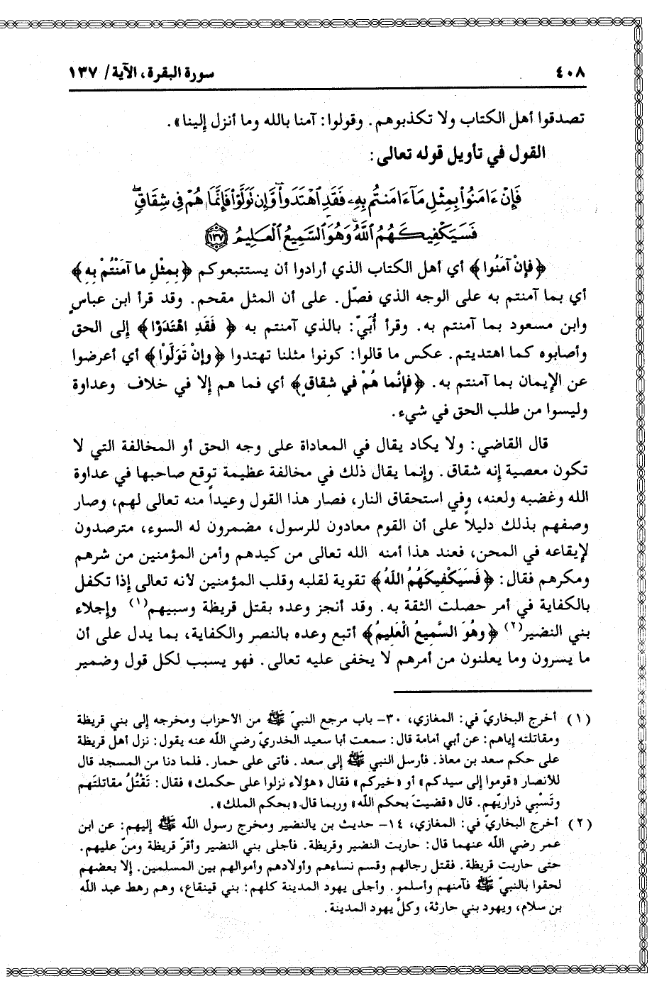 فَإِنْ آمَنُوا بِمِثْلِ ما آمَنْتُمْ بِهِ فَقَدِ اهْتَدَوْا وَإِنْ تَوَلَّوْا فَإِنَّما هُمْ فِي شِقاقٍ فَسَيَكْفِيكَهُمُ اللَّهُ وَهُوَ السَّمِيعُ الْعَلِيمُ (137)