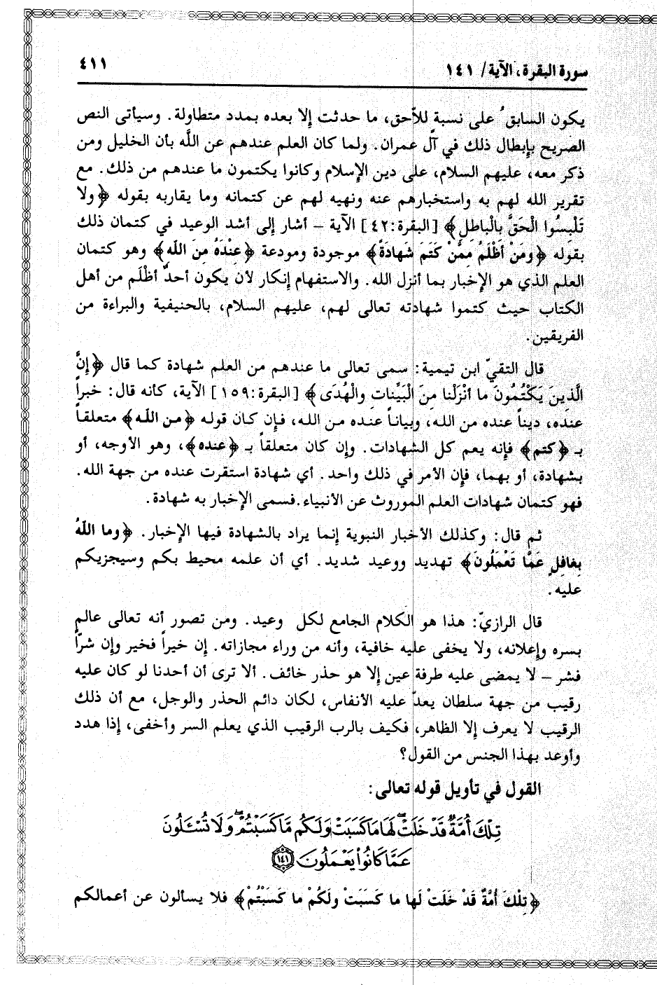 تِلْكَ أُمَّةٌ قَدْ خَلَتْ لَها ما كَسَبَتْ وَلَكُمْ ما كَسَبْتُمْ وَلا تُسْئَلُونَ عَمَّا كانُوا يَعْمَلُونَ (141)