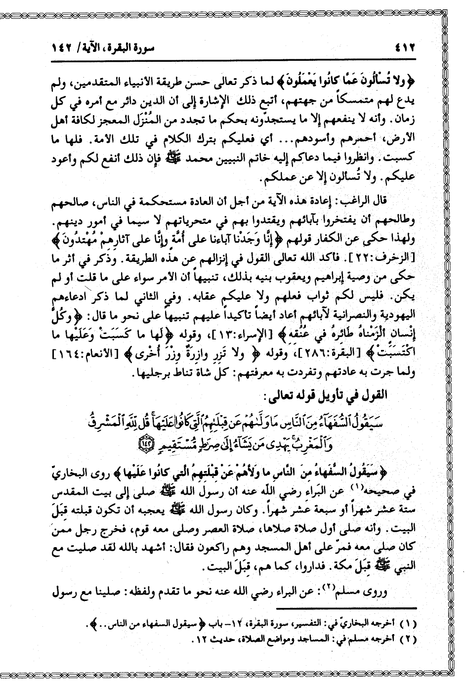 (1) أخرجه البخاريّ في: التفسير، سورة البقرة، 12- باب سَيَقُولُ السُّفَهاءُ مِنَ النَّاسِ ...