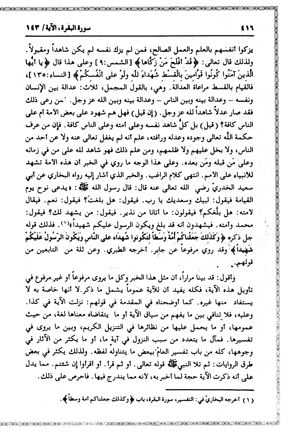 (1) أخرجه البخاريّ في: التفسير، سورة البقرة، باب وَكَذلِكَ جَعَلْناكُمْ أُمَّةً وَسَطاً.