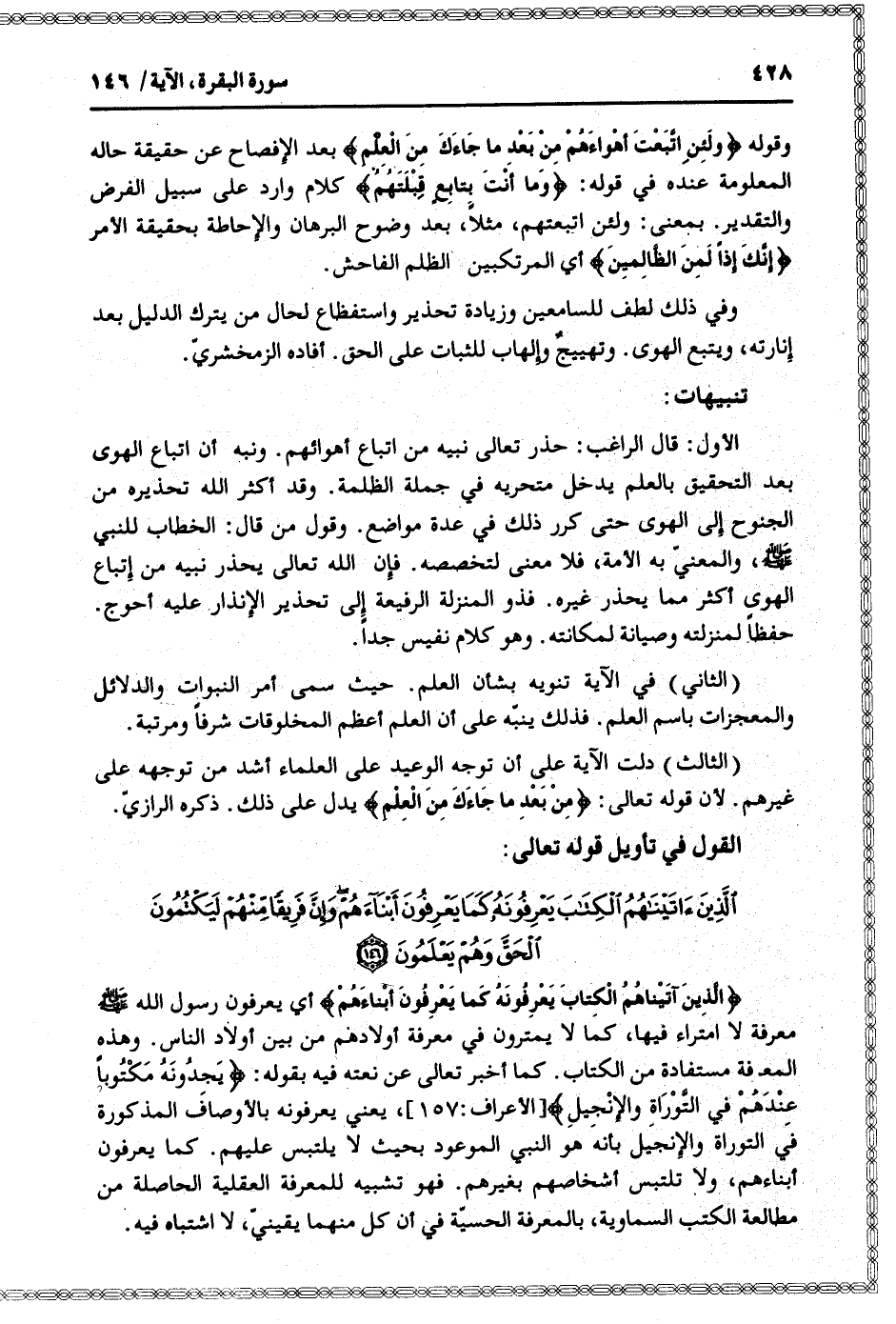 الَّذِينَ آتَيْناهُمُ الْكِتابَ يَعْرِفُونَهُ كَما يَعْرِفُونَ أَبْناءَهُمْ وَإِنَّ فَرِيقاً مِنْهُمْ لَيَكْتُمُونَ الْحَقَّ وَهُمْ يَعْلَمُونَ (146)