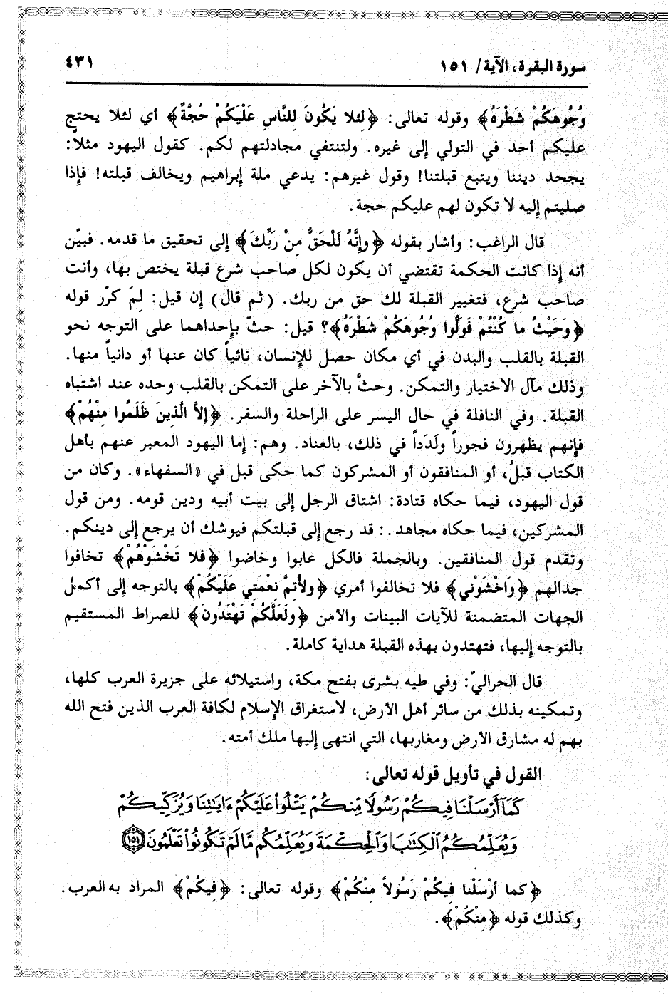 القول في تأويل قوله تعالى: [سورة البقرة (2) : آية 151]