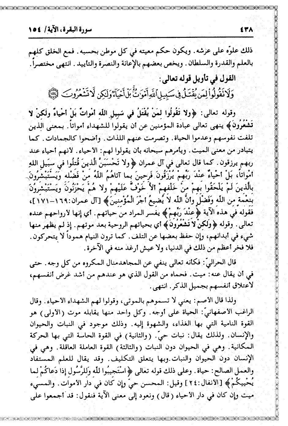 القول في تأويل قوله تعالى: [سورة البقرة (2) : آية 154]