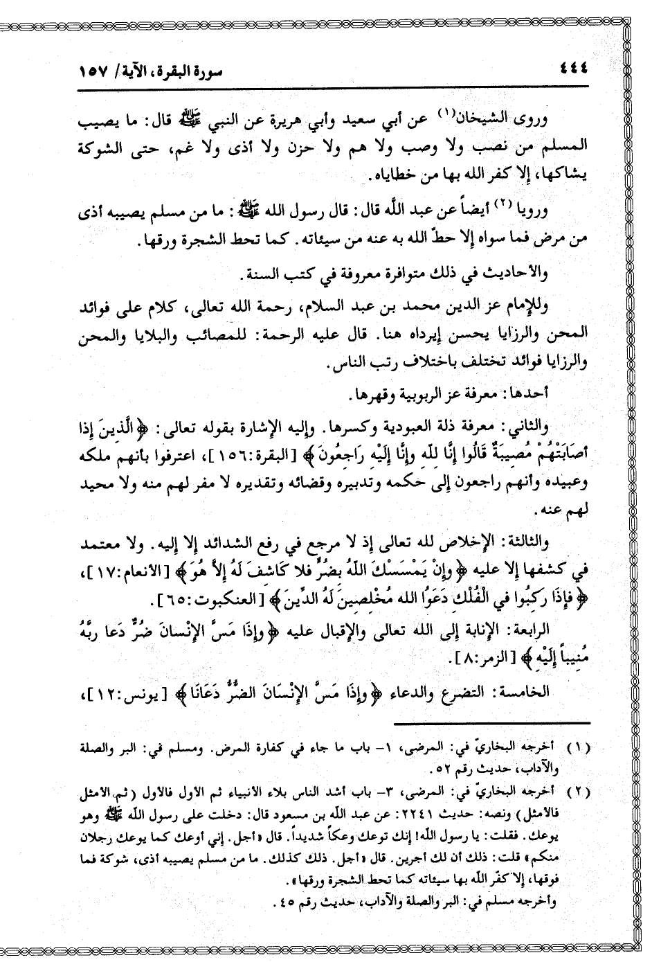 (1) أخرجه البخاريّ في: المرضى، 1- باب ما جاء في كفارة المرض. ومسلم في: البر والصلة والآداب، حديث رقم 52.
