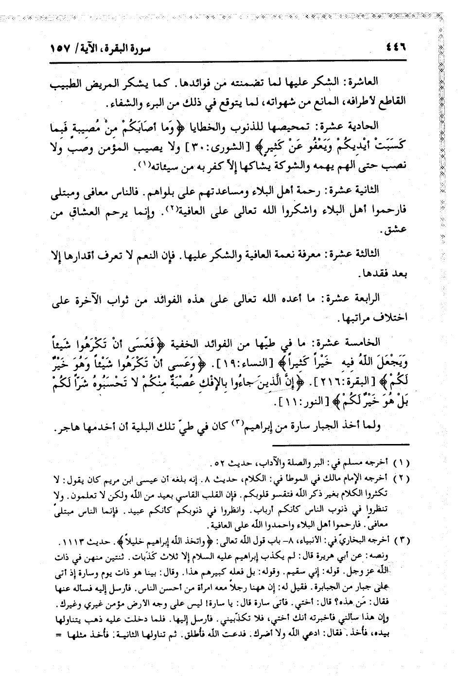 العاشرة: الشكر عليها لما تضمنته من فوائدها. كما يشكر المريض الطبيب القاطع لأطرافه، المانع من شهواته، لما يتوقع في ذلك من البرء والشفاء.