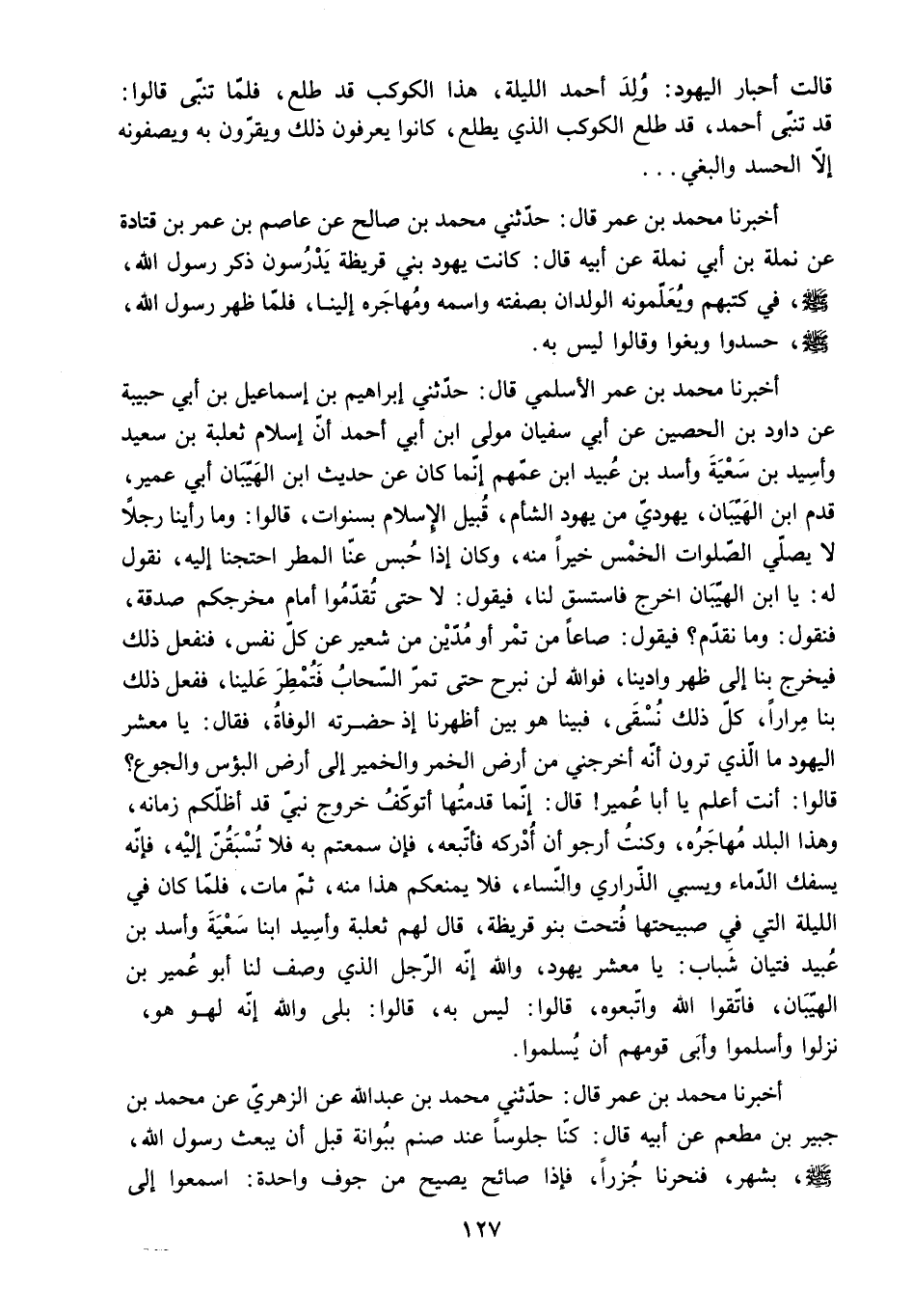 قَالَتْ أَحْبَارُ الْيَهُودِ: وُلِدَ أَحْمَدُ اللَّيْلَةَ. هَذَا الْكَوْكَبُ قَدْ طَلَعَ. فَلَمَّا تَنَبَّى قَالُوا:
