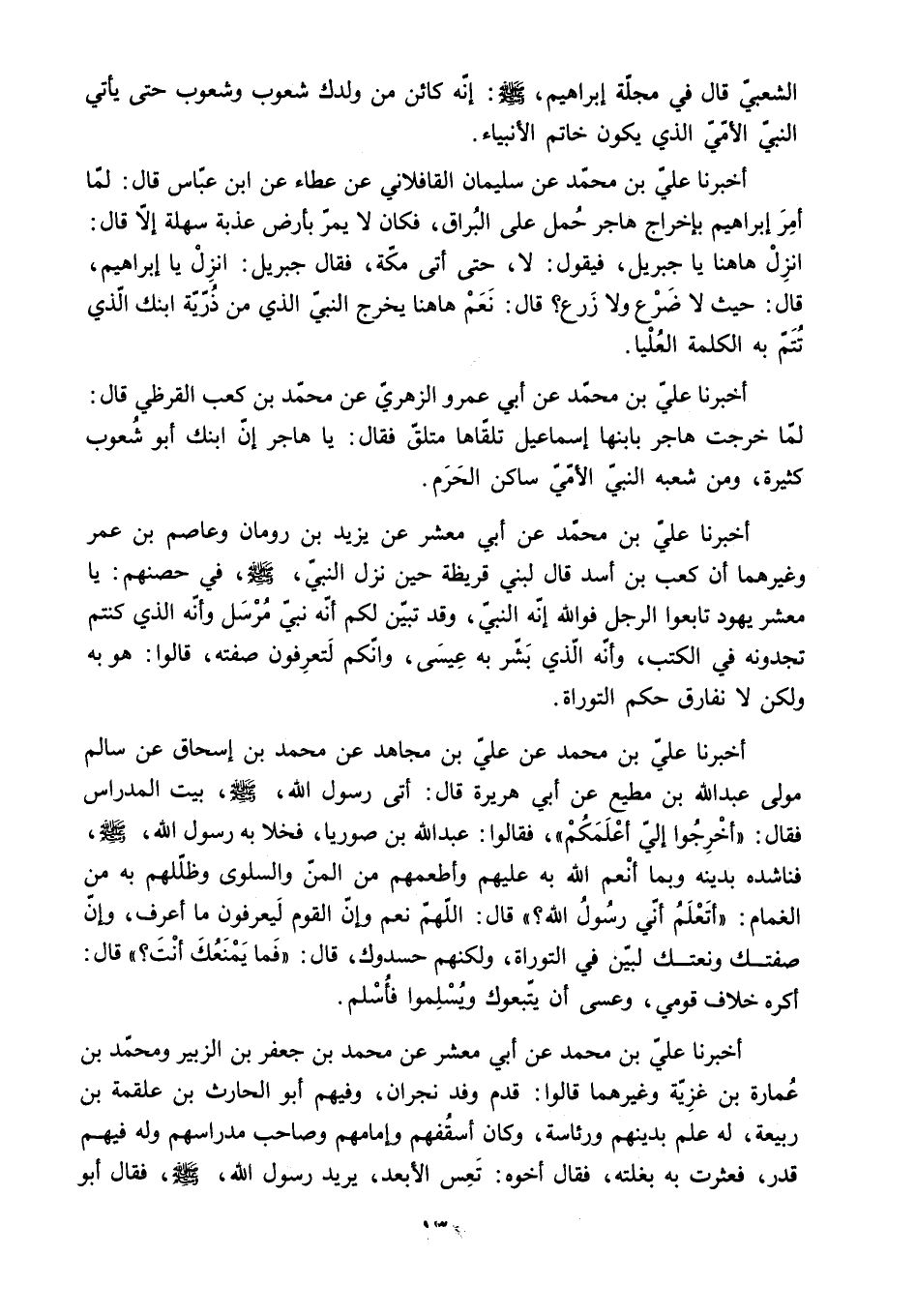 الشعبي قال في مجلة إبراهيم. ص: أَنَّهُ كَائِنٌ مِنْ وَلَدِكَ شُعُوبٌ وَشُعُوبٌ حَتَّى يَأْتِيَ النَّبِيُّ الأُمِّيُّ الَّذِي يَكُونُ خَاتَمَ الأَنْبِيَاءِ.
