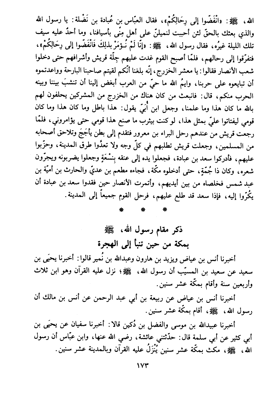 أَخْبَرَنَا أَنَسُ بْنُ عِيَاضٍ عَنْ رَبِيعَةَ بْنِ أَبِي عَبْدِ الرَّحْمَنِ عَنْ أَنَسِ بْنِ مَالِكٍ أَنَّ رَسُولَ اللَّهِ - صَلَّى اللَّهُ عَلَيْهِ وَسَلَّمَ - أَقَامَ بِمَكَّةَ عَشْرَ سِنِينَ.
