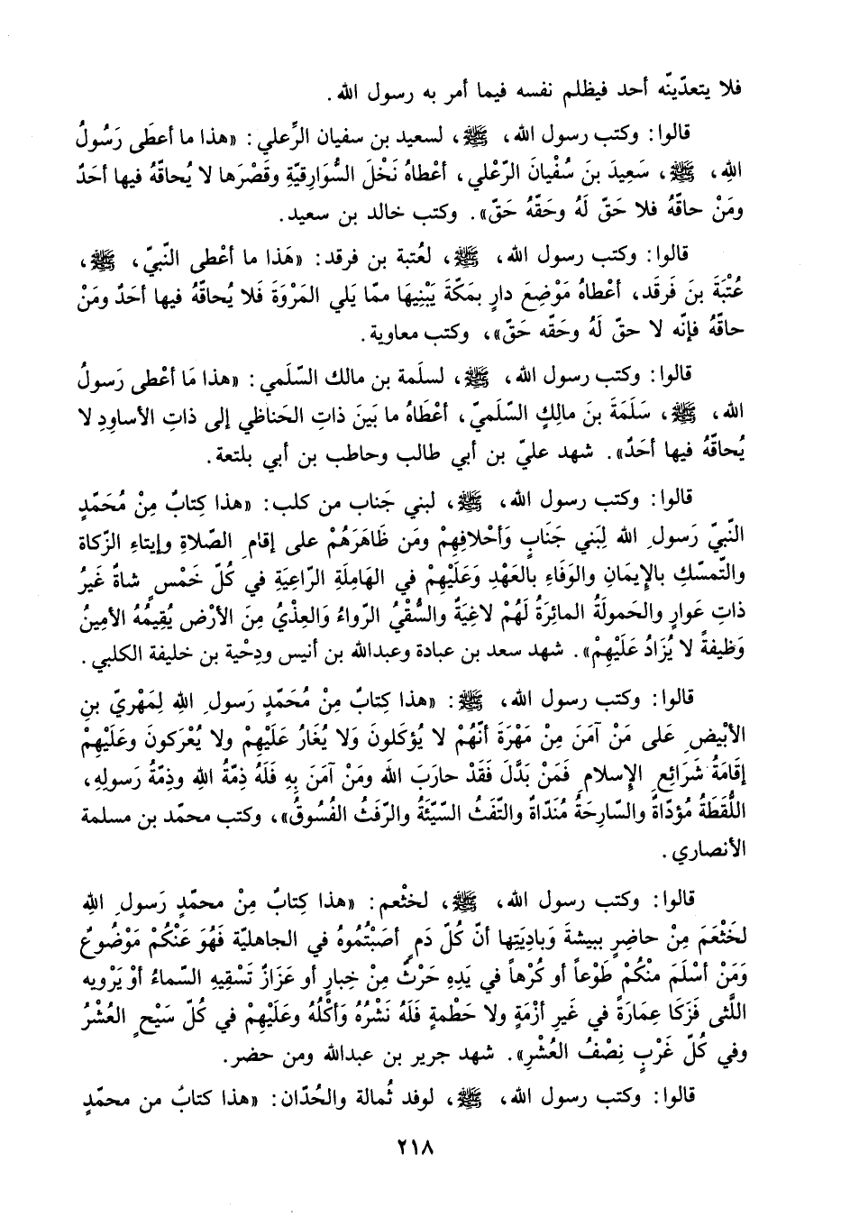 قالوا: وَكَتَبَ رَسُولُ اللَّهِ - صَلَّى اللَّهُ عَلَيْهِ وَسَلَّمَ - لِوَفْدِ ثُمَالَةَ وَالْحُدَّانِ: هَذَا كِتَابٌ مِنْ محمد