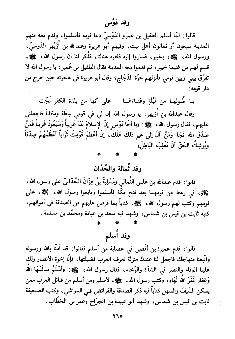 [وقال عبد الله بن أزيهر: يا رسول الله إن لي في قومي سطة ومكانا فاجعلني عليهم. فقال رسول الله. ص: يا أخا دوس إن الإسلام بدا غريبا وسيعود غريبا فمن صدق الله نجا ومن ال إلى غير ذلك هلك. إن أعظم قومك ثوابا أعظمهم صدقا ويوشك الحق أن يغلب الباطل] .
