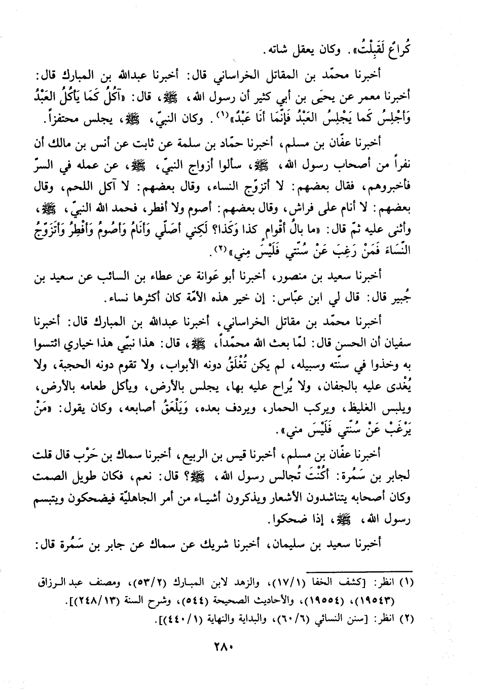 (1) انظر: [كشف الخفا (1/ 17) ، والزهد لابن المبارك (2/ 53) ، ومصنف عبد الرزاق (19543) ، (1954) ، والأحاديث الصحيحة (544) ، وشرح السنة (13/ 248) ] .