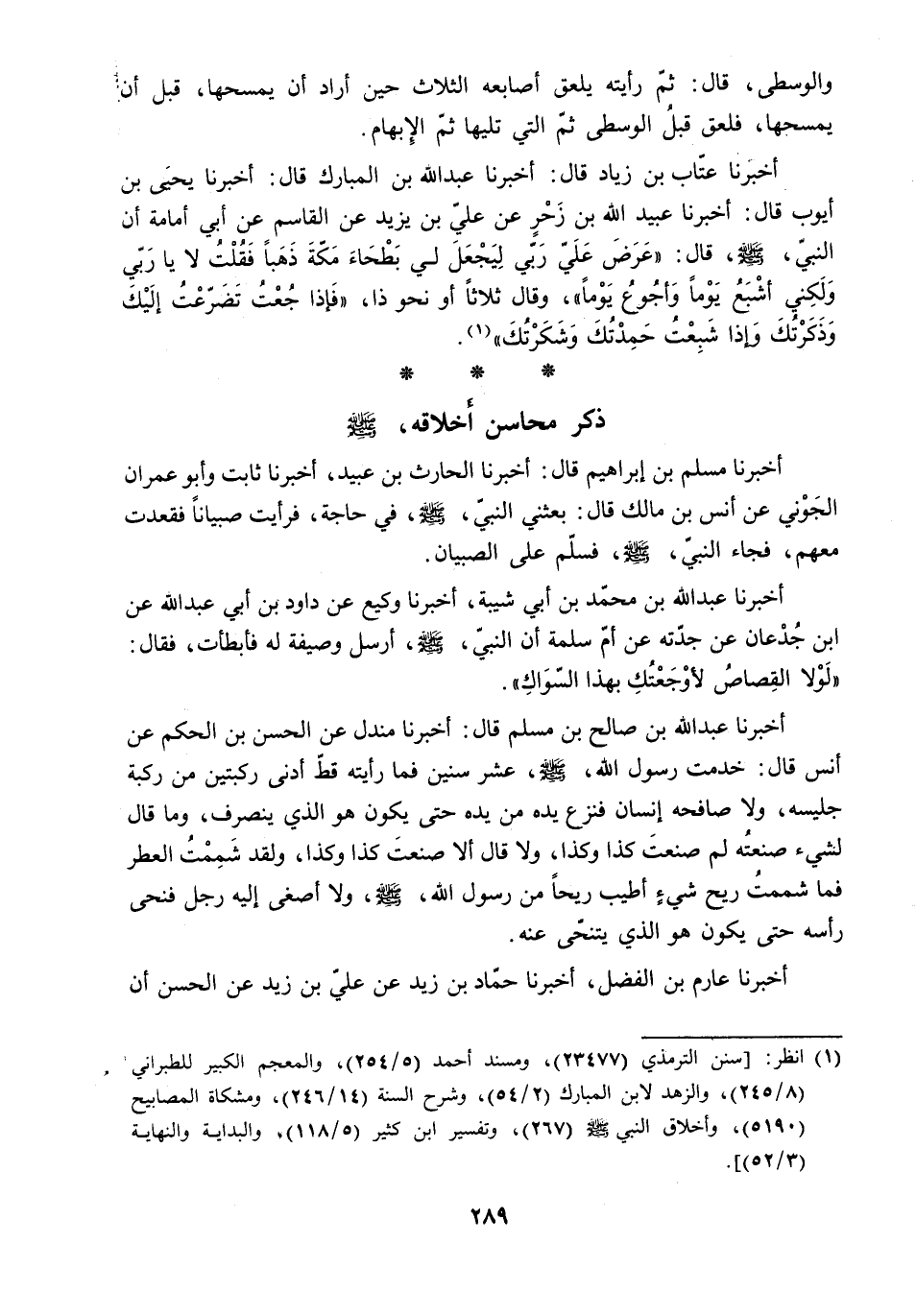 (1) انظر: [سنن الترمذي (23477) ، ومسند أحمد (5/ 254) ، والمعجم الكبيرللطبراني (8/ 245) ، والزهد لابن المبارك (2/ 54) ، وشرح السنة (14/ 246) ، ومشكاة المصابيح (5190) ، وأخلاق النبي صلى الله عليه وسلّم (267) ، وتفسير ابن كثير (5/ 118) ، والبداية والنهاية (3/ 152) ] .