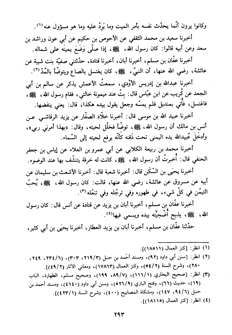 (3) انظر: [صحيح البخاري (1/ 116) ، (7/ 89، 199) ، وصحيح مسلم، الطهارة، الباب (19) ، حديث (66) ، وفتح الباري (9/ 526) ، وسنن أبي داود (4140) ، ومسند أحمد بن حنبل (6/ 94، 147) ، ومشكاة المصابيح (400) ، وشرح السنة (1/ 423) ] .