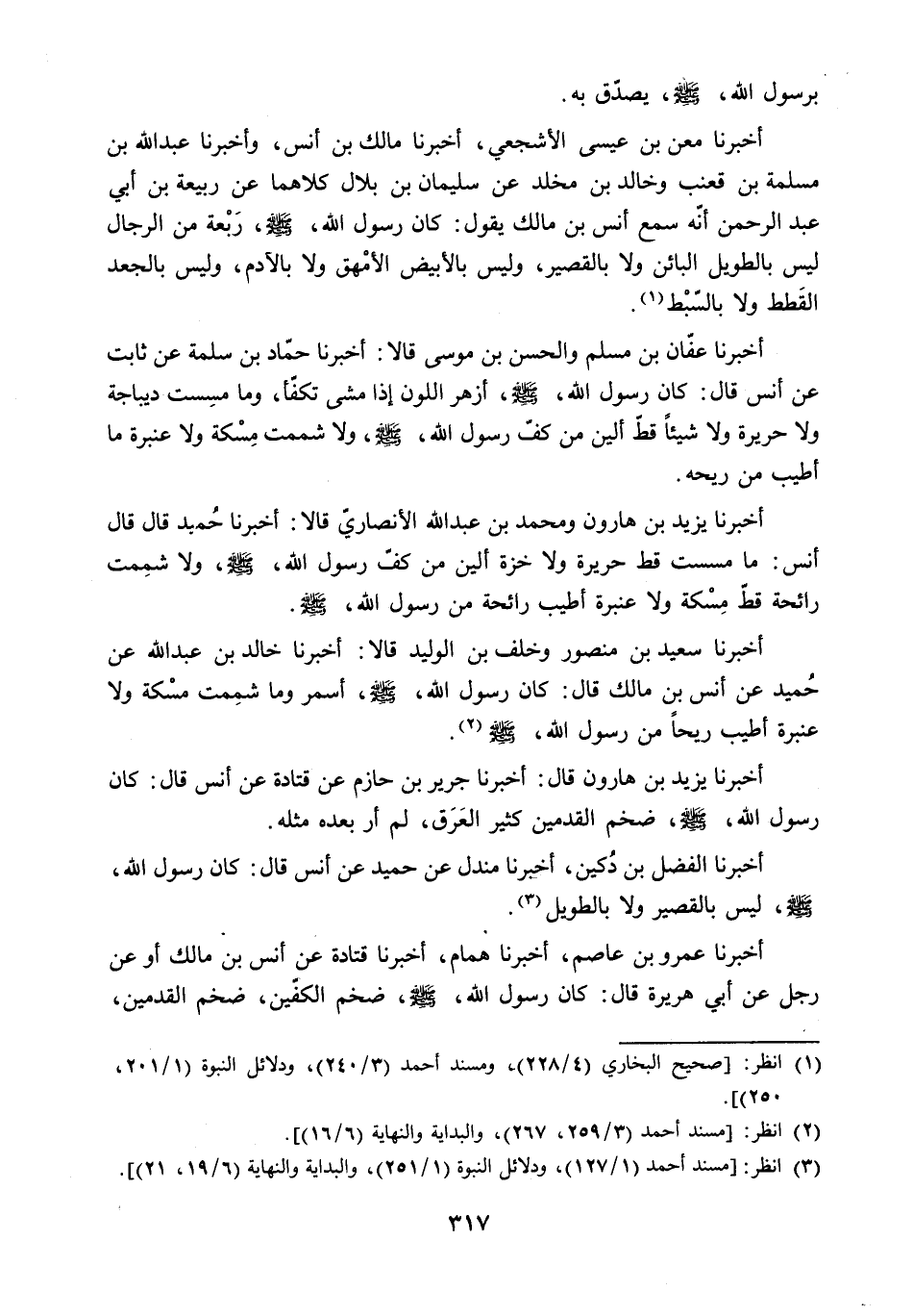 أَخْبَرَنَا سَعِيدُ بْنُ مَنْصُورٍ وَخَلَفُ بْنُ الْوَلِيدِ قَالا: أَخْبَرَنَا خَالِدُ بْنُ عَبْدِ اللَّهِ عَنْ حُمَيْدٍ عَنْ أَنَسِ بْنِ مَالِكٍ قَالَ: كَانَ رَسُولُ اللَّهِ - صَلَّى اللَّهُ عَلَيْهِ وَسَلَّمَ - أَسْمَرَ وَمَا شَمِمْتُ مِسْكَةً وَلا عَنْبَرَةً أَطْيَبَ رِيحًا مِنْ رَسُولِ اللَّهِ- صَلَّى اللَّهُ عَلَيْهِ وَسَلَّمَ - «2» .