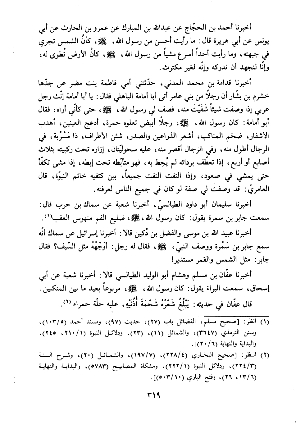 (1) انظر: [صحيح مسلم، الفضائل باب (27) ، حديث (97) ، ومسند أحمد (5/ 103) ، وسنن الترمذي (3647) ، والشمائل (11) ، (23) ، ودلائل النبوة (1/ 210، 245) ، والبداية والنهاية (6/ 20) ] .