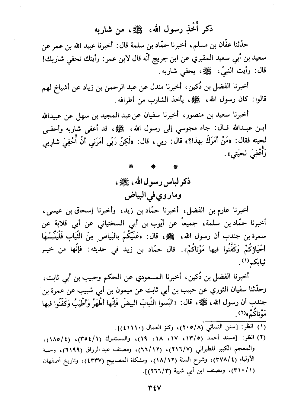(2) انظر: [مسند أحمد (5/ 13، 17، 18، 19) ، والمستدرك (1/ 354) ، (4/ 185، والمعجم الكبير للطبراني (7/ 216) ، (12/ 66) ، ومصنف عبد الرزاق (6199) ، وحلية الأولياء (4/ 378) ، وشرح السنة (12/ 18) ، ومشكاة المصابيح (4337) ، وتاريخ أصفهان (1/ 310) ، ومصنف ابن أبي شيبة (3/ 266) ] .