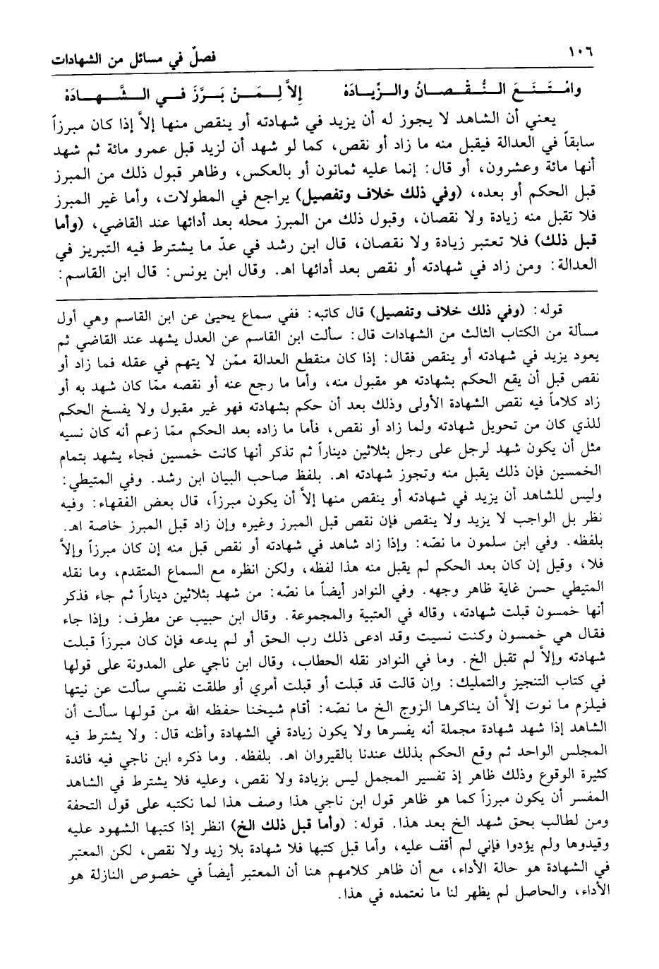 قال ابن رشد في عد ما يشترط فيه التبريز في العدالة ومن زاد في شهادته أو نقص بعد أدائها
