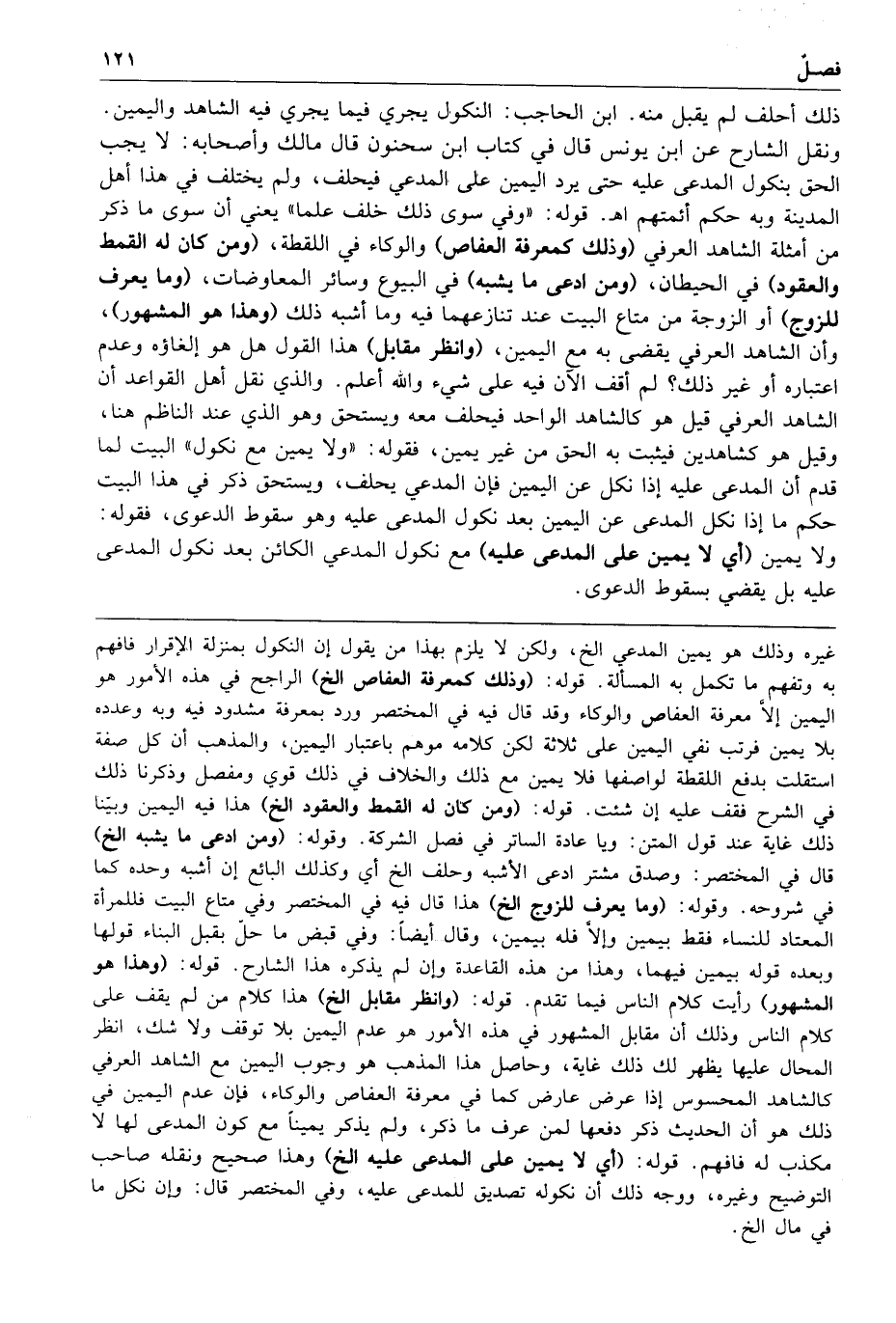 ذلك أحلف لم يقبل منه ابن الحاجب النكول يجري فيما يجري فيه الشاهد واليمين ونقل الشارح عن ابن يونس قال في كتاب ابن سحنون قال مالك وأصحابه لا يجب الحق بنكول المدعى عليه حتى يرد اليمين على المدعي فيحلف ولم يختلف في هذا أهل المدينة
