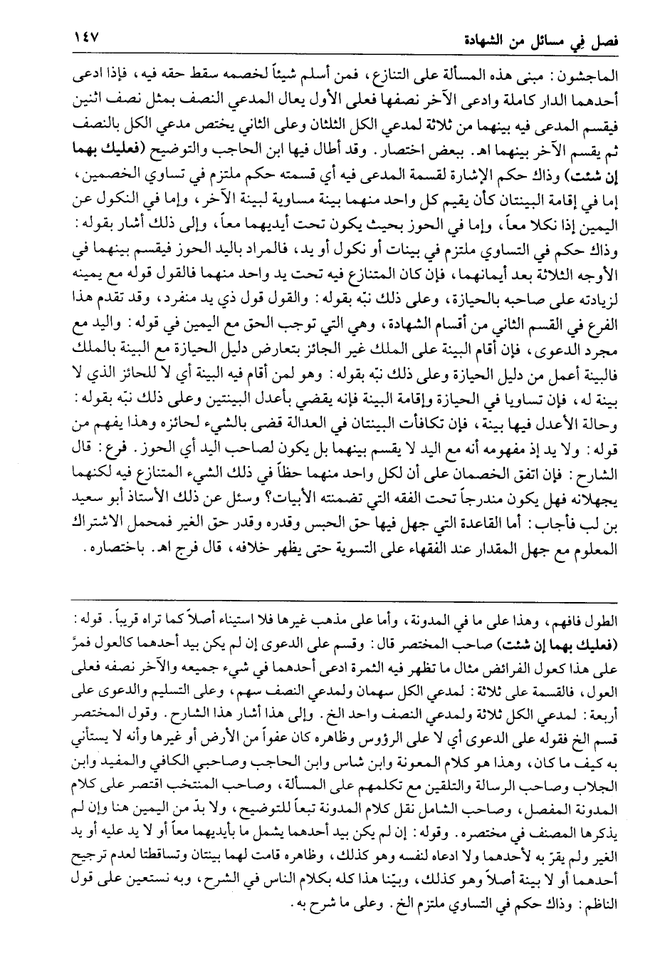 فرع قال الشارح فإن اتفق الخصمان على أن لكل واحد منهما حظا في ذلك الشيء المتنازع فيه لكنهما يجهلانه فهل يكون مندرجا تحت الفقه التي تضمنته الأبيات وسئل عن ذلك الأستاذ أبو سعيد بن لب فأجاب أما القاعدة التي جهل فيها حق الحبس وقدره وقدر حق الغير فمحمل الاشتراك المعلوم مع جهل المقدار عند الفقهاء على التسوية حتى يظهر خلافه قال فرج ا هـ باختصاره