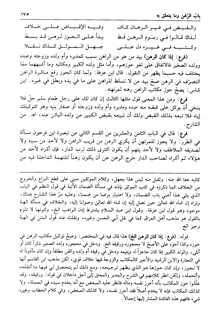 ابن شاس يصح حوز مكاتب الراهن رهنه لمرتهنه