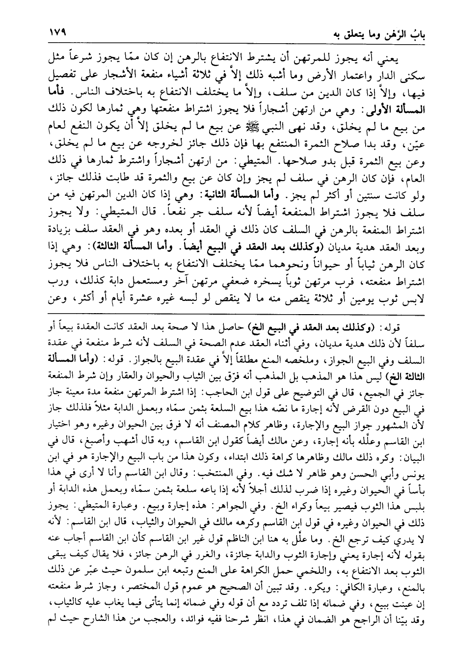 قال المتيطي ولا يجوز اشتراط المنفعة بالرهن في السلف كان ذلك في العقد أو بعده وهو في العقد سلف بزيادة وبعد العقد هدية مديان وكذلك بعد العقد في البيع أيضا