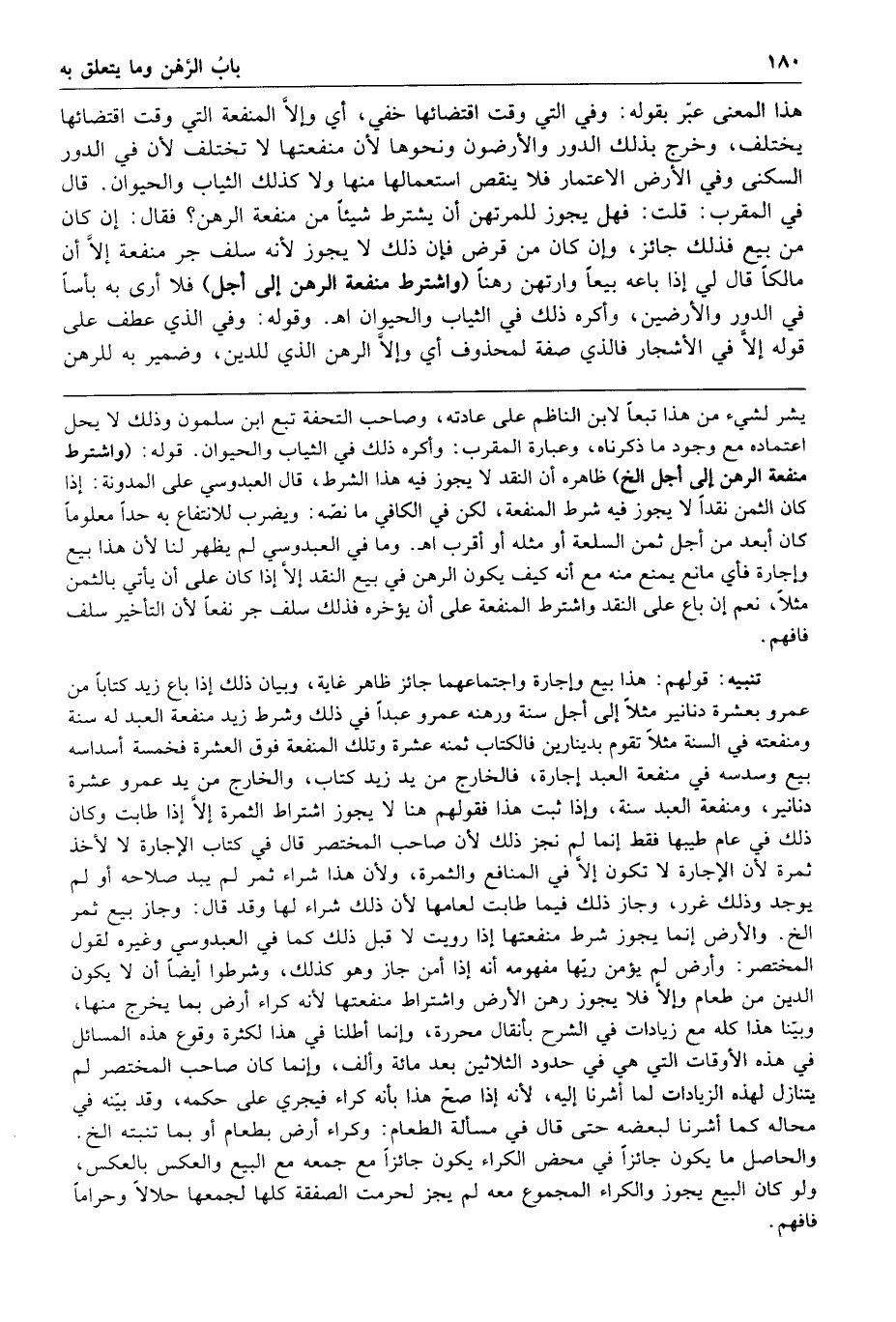 قال في المقرب قلت فهل يجوز للمرتهن أن يشترط شيئا من منفعة الرهن فقال إن كان من بيع فذلك جائز وإن كان من قرض فإن ذلك لا يجوز لأنه سلف جر منفعة