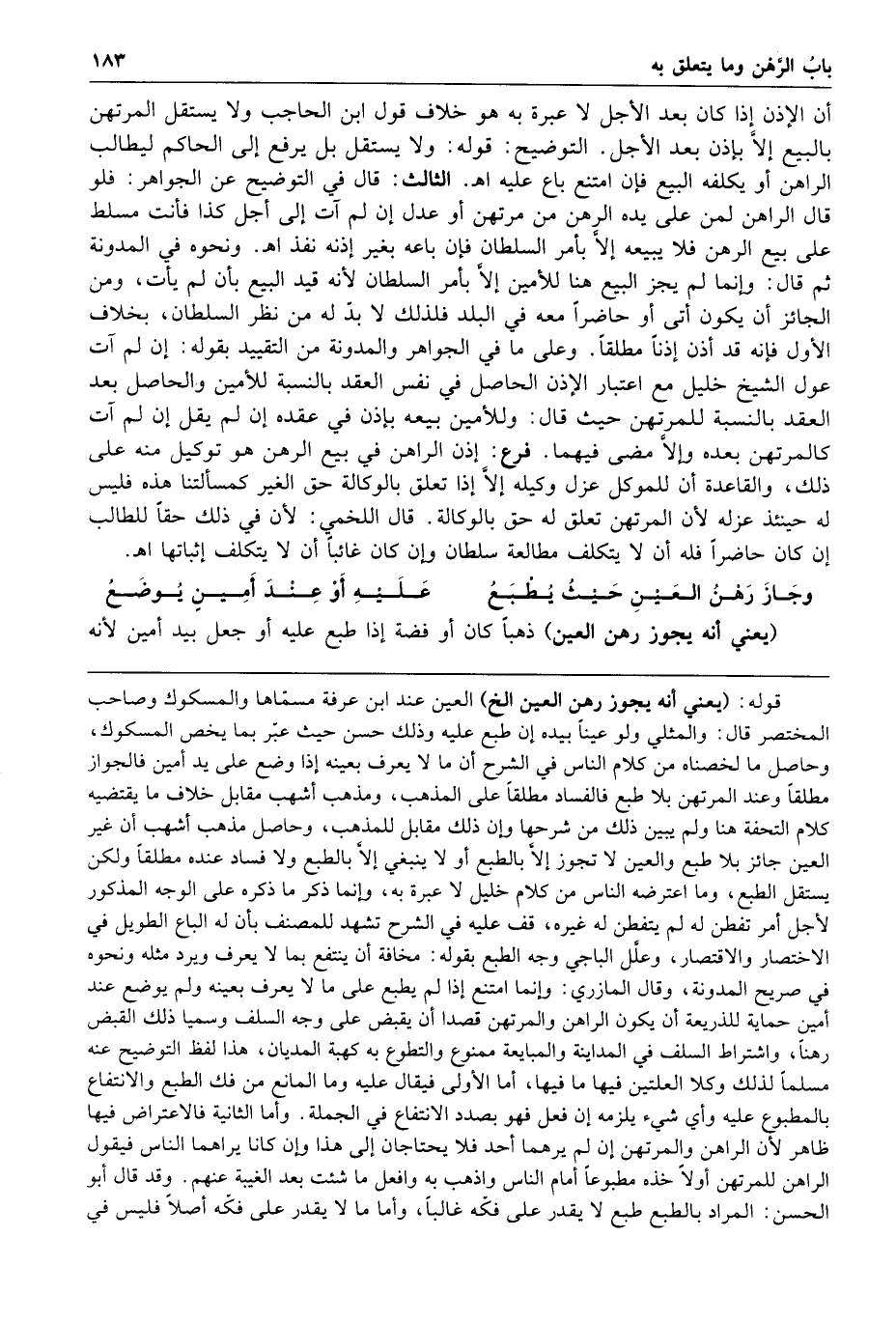 وجاز رهن العين حيث يطبع عليه أو عند أمين يوضع يعني أنه يجوز رهن العين ذهبا كان أو فضة إذا طبع عليه أو جعل بيد أمين لأنه