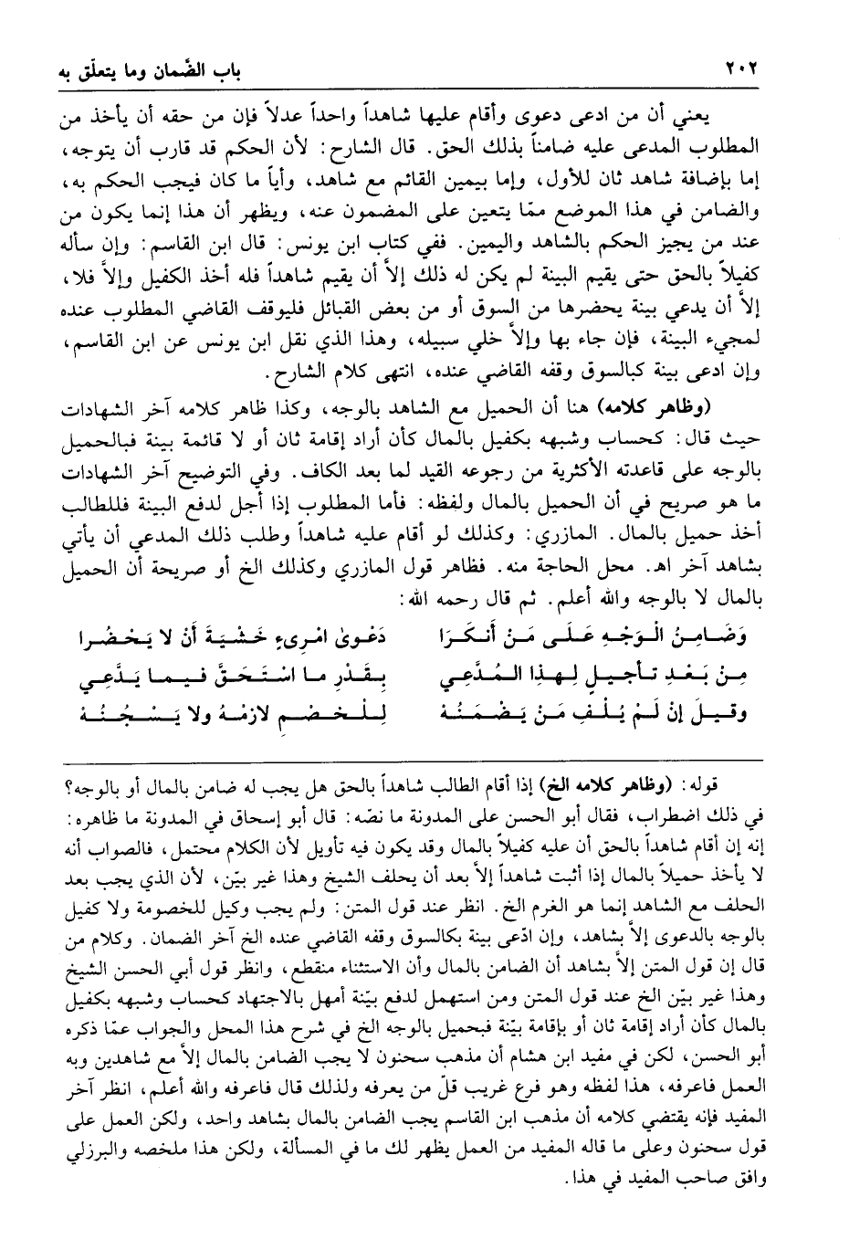 وضامن الوجه على من أنكرا دعوى امرئ خشية أن لا يحضرا من بعد تأجيل لهذا المدعي بقدر ما استحق فيما يدعي وقيل إن لم يلف من يضمنه للخصم لازمه ولا يسجنه