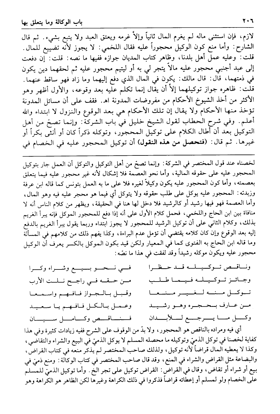 ثم قال الشارح وأما منع كون الوكيل محجورا عليه فقال اللخمي لا يجوز لأنه تضييع للمال قلت وعليه عمل أهل بلدنا