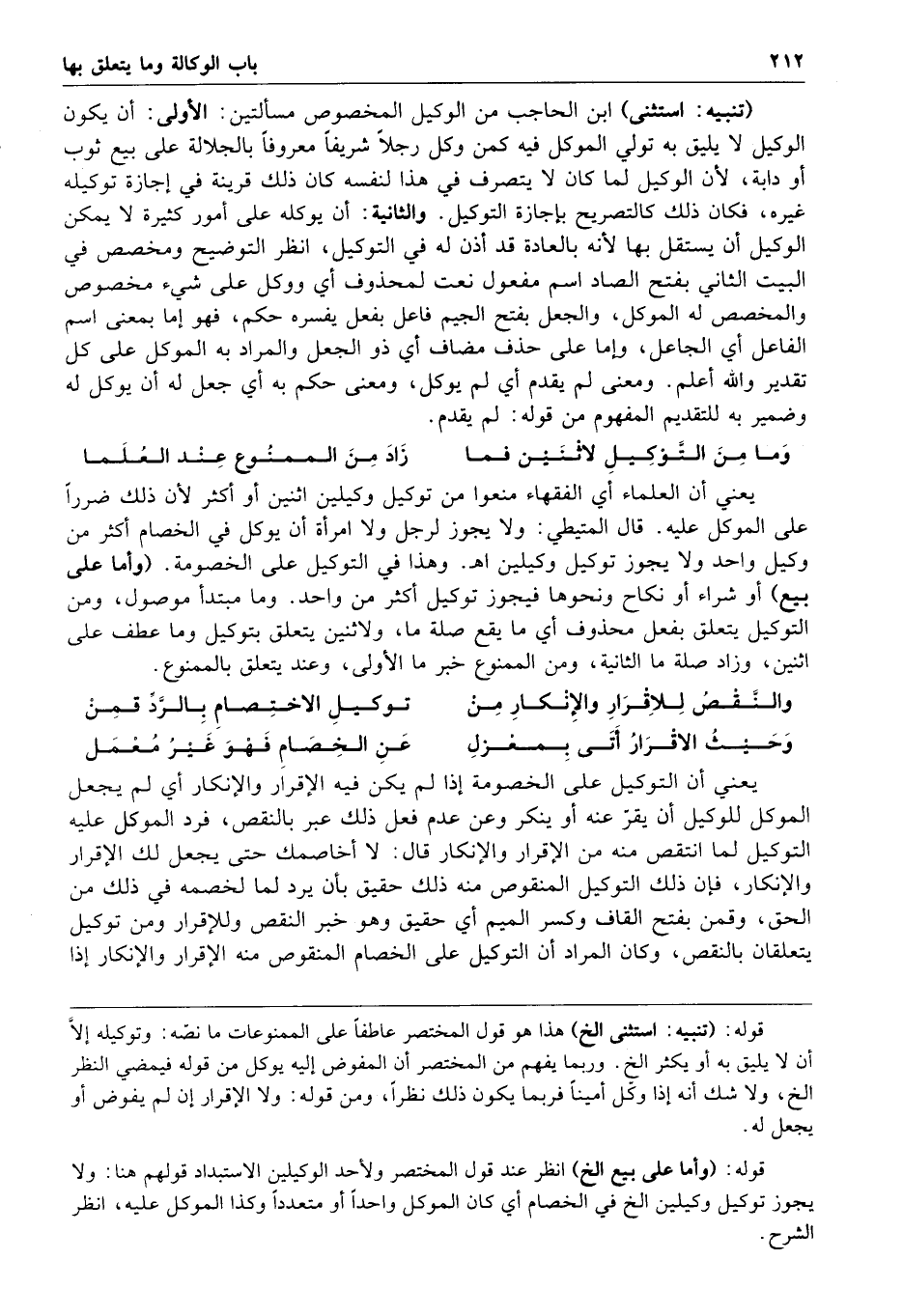وما من التوكيل لاثنين فما زاد من الممنوع عند العلما يعني أن العلماء أي الفقهاء منعوا من توكيل وكيلين اثنين أو أكثر لأن ذلك ضررا على الموكل عليه