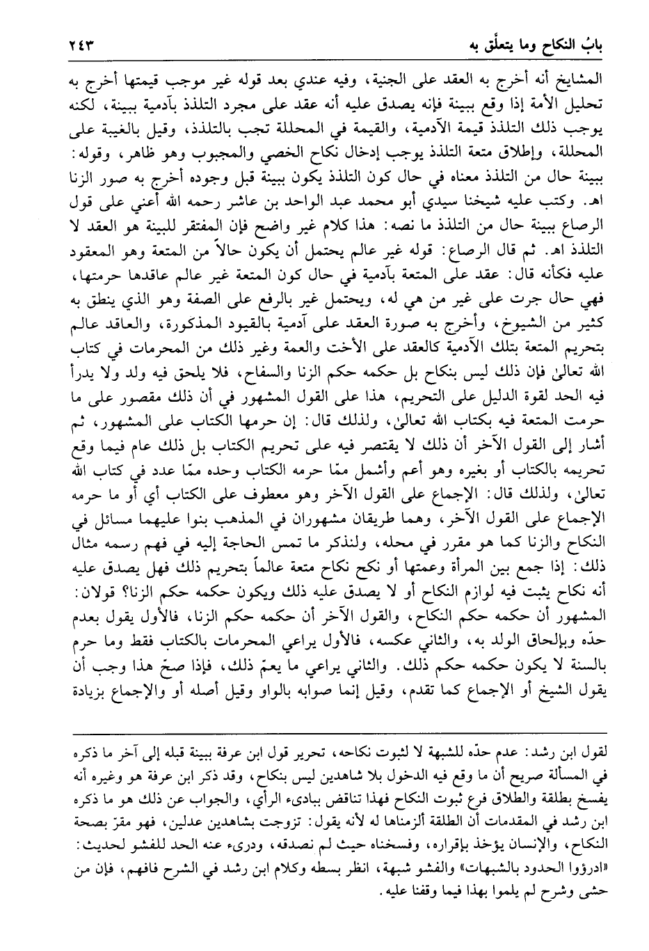 وكتب عليه شيخنا سيدي أبو محمد عبد الواحد ابن عاشر رحمه الله أعني على قول الرصاع ببينة حال من التلذذ ما نصه هذا كلام غير واضح فإن المفتقر للبينة هو العقد لا التلذذ ا هـ