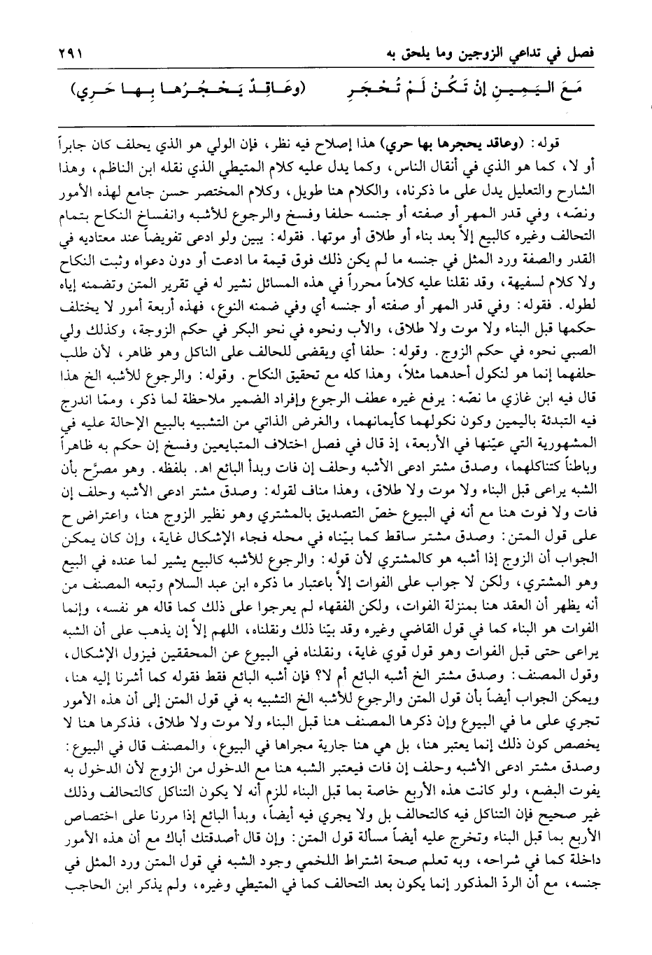مع اليمين إن تكن لم تحجر وعاقد يحجرها بها حري