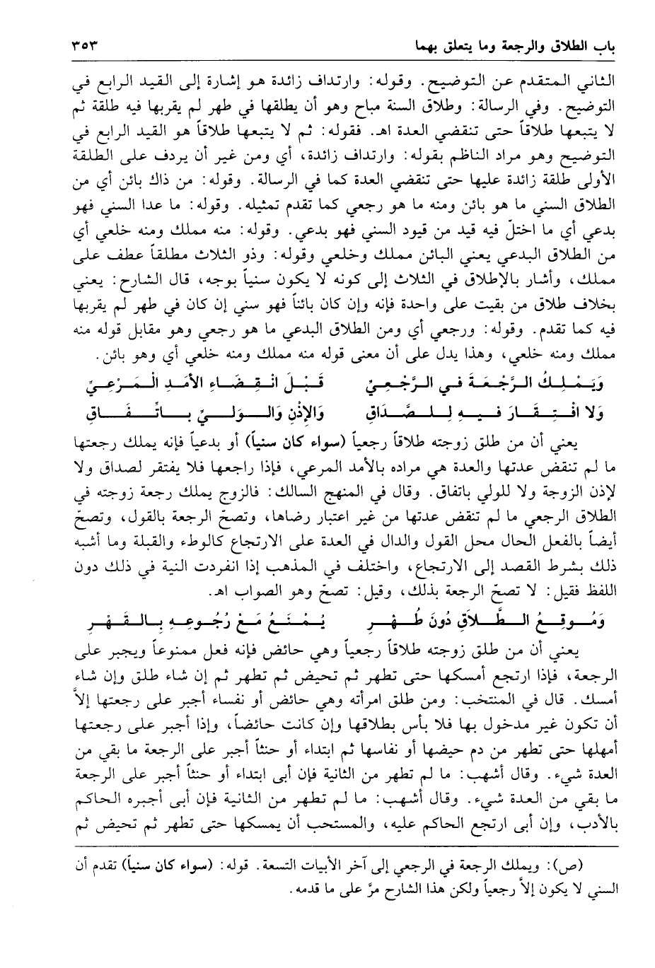 353 الثاني المتقدم عن التوضيح وقوله وارتداف زائده هو إشارة إلى القيد الرابع في التوضيح وفي الرسالة وطلاق السنة مباح وهو أن يطلقها في طهر لم يقربها فيه طلقة ثم لا يتبعها طلاقا حتى تنقضي العدة ا هـ