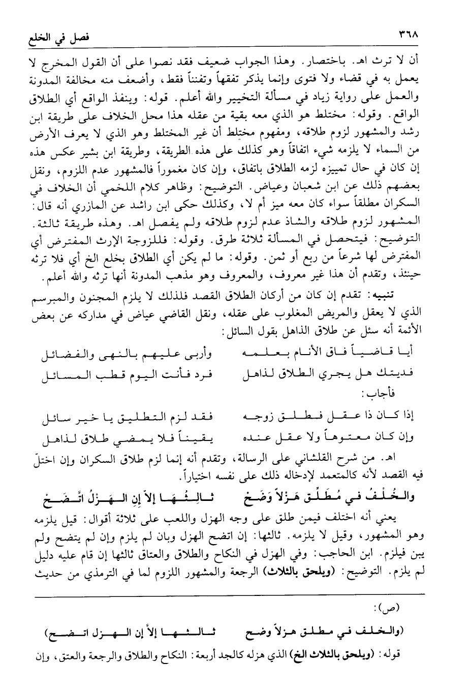 ابن الحاجب وفي الهزل في النكاح والطلاق والعتاق ثالثها إن قام عليه دليل لم يلزم التوضيح ويلحق بالثلاث الرجعة والمشهور اللزوم لما في الترمذي من حديث