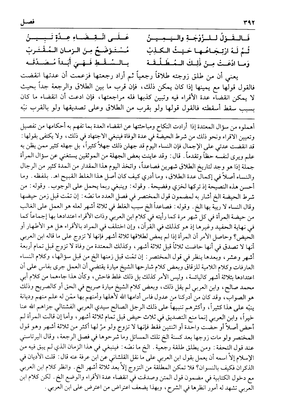 فالقول للزوجة واليمين على انقضاء عدة تبين ثم له ارتجاعها حيث الكذب مستوضح من الزمان المقترب وما ادعت من ذلك المطلقه بالسقط فهي أبدا مصدقه يعني أن من طلق زوجته طلاقا رجعيا ثم أراد رجعتها فزعمت أن عدتها انقضت فالقول قولها مع يمينها إذا كان يمكن ذلك فإن قرب ما بين الطلاق والرجعة جدا بحيث لا يمكن انقضاء عدة الأقراء فيه وتبين كذبها فله مراجعتها فإن ادعت أن انقضاء ما كان بسبب سقط أسقطته فالقول قولها ولو بقرب من الطلاق وعلى تصديقها ولو بالقرب