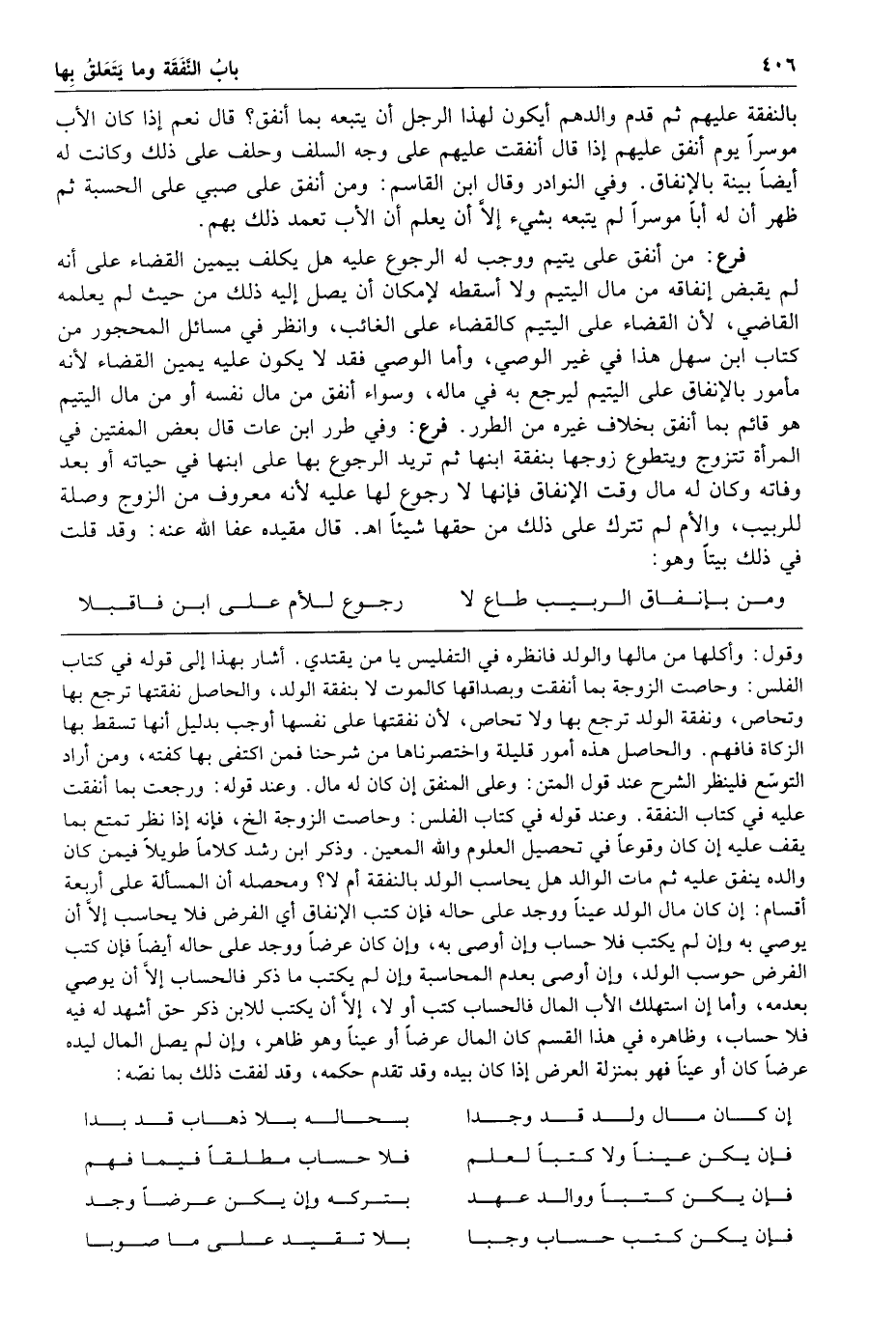 فرع وفي طرر ابن عات قال بعض المفتين في المرأة تتزوج ويتطوع زوجها بنفقة ابنها ثم تريد الرجوع بها على ابنها في حياته أو بعد وفاته وكان له مال وقت الإنفاق فإنها لا رجوع لها عليه لأنه معروف من الزوج وصلة للربيب والأم لم تترك على ذلك من حقها شيئا ا هـ