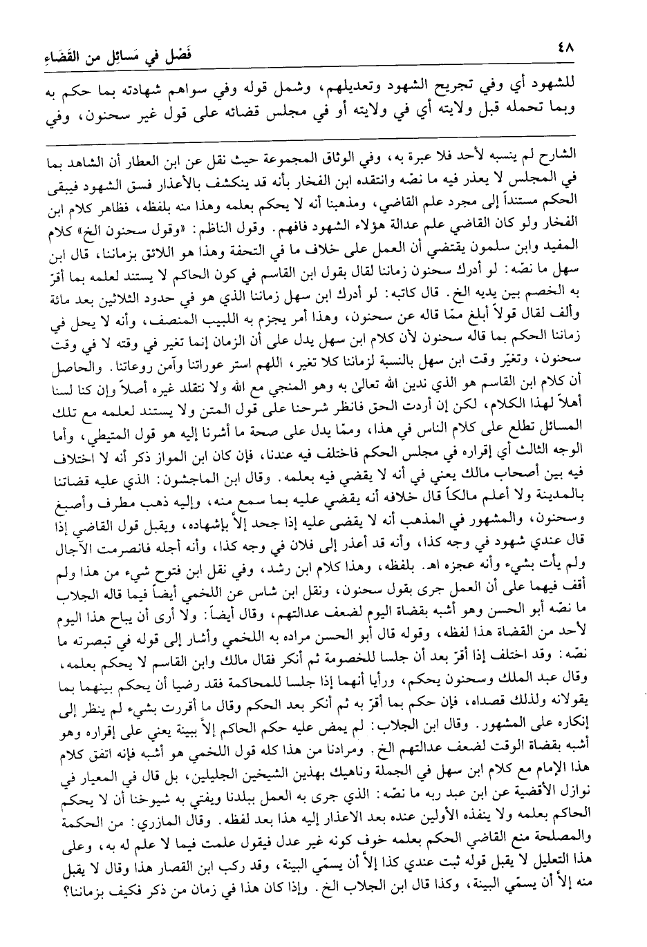 للشهود أي وفي تجريح الشهود وتعديلهم وشمل قوله وفي سواهم شهادته بما حكم به وبما تحمله قبل ولايته أي في ولايته أو في مجلس قضائه على قول غير سحنون