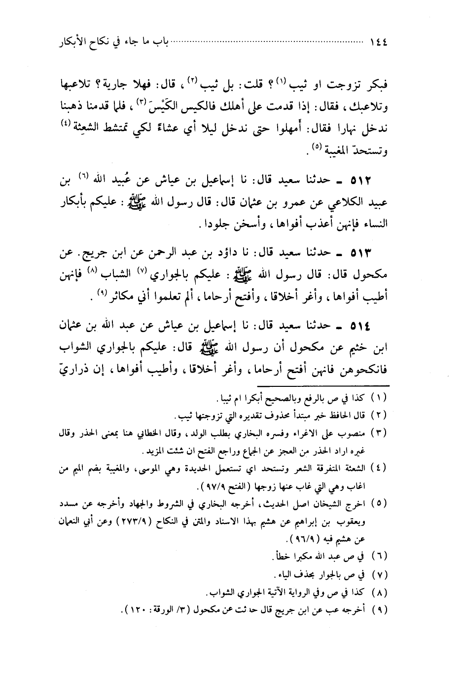 512- حَدَّثَنَا إِسْمَاعِيلُ بْنُ عَيَّاشٍ ، عَنْ عُبَيْدِ اللهِ بْنِ عُبَيْدٍ الْكَلاَعِيِّ ، عَنْ عَمْرِو بْنِ عُثْمَانَ ، قَالَ : قَالَ رَسُولُ اللهِ صَلَّى اللَّهُ عَلَيْهِ وَسَلَّمَ : عَلَيْكُمْ بِأَبْكَارِ النِّسَاءِ ؛ فَإِنَّهُنَّ أَعْذَبُ أَفْوَاهًا ، وَأَسْخَنُ جُلُودًا.