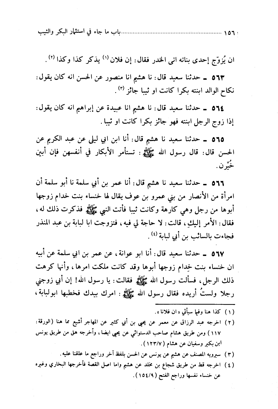 563- حَدَّثَنَا هُشَيْمٌ ، أَخْبَرَنَا مَنْصُورٌ ، عَنِ الْحَسَنِ ، أَنَّهُ كَانَ يَقُولُ : نِكَاحُ الْوَالِدِ ابْنَتَهُ ، بِكْرًا كَانَتْ أَوْ ثَيِّبًا ، جَائِزٌ.
